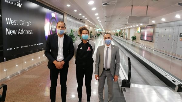 وفد رسمي من وزارة الرياضة يستقبل ميار شريف بمطار القاهرة