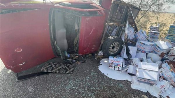 انقلاب سيارة نقل محملة بالدهانات على الطريق الصحراوي في قنا