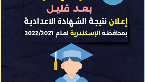 أعلنت مديرة التربية والتعليم بمحافظة الإسكندرية، اليوم الأربعاء، أن نتيجة الشهادة الإعدادية ستعلن بعد قليل، وقد نشرت الصفحة الرسمية للمديرية منشور كتبت به: " ترقبوا إعلان نتيجة الشهادة الإعدادية بعد قليل بمحافظة الإسكندرية للعام الدراسي 2021/2022” .