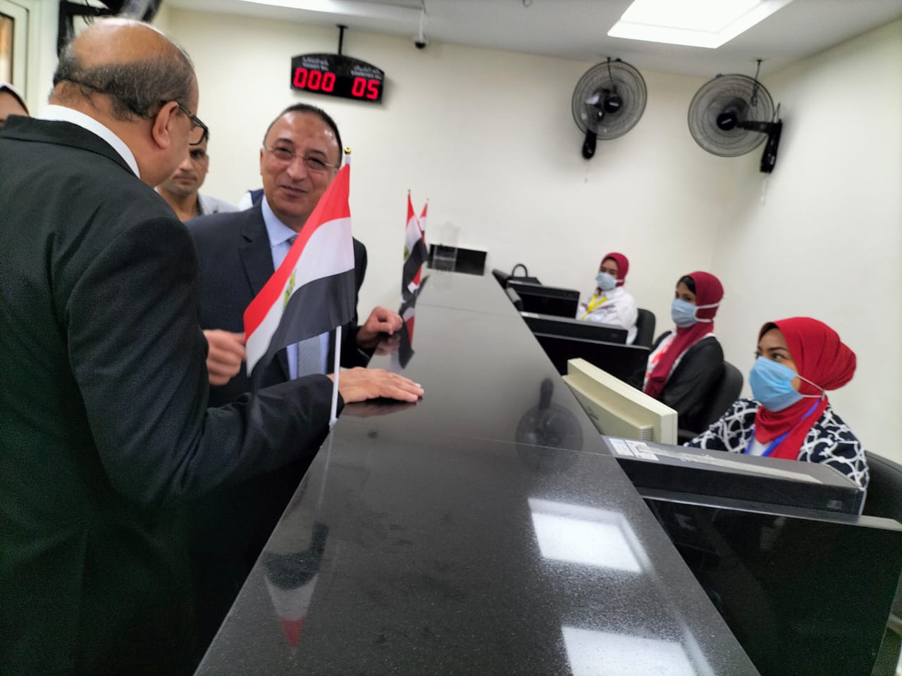 وأضاف أن المركز مزود بنظام النداء الآلي المتبع العمل به بالبنوك حيث يحصل المواطن على رقم للتعامل به على شباك من قبل موظف الاستقبال.