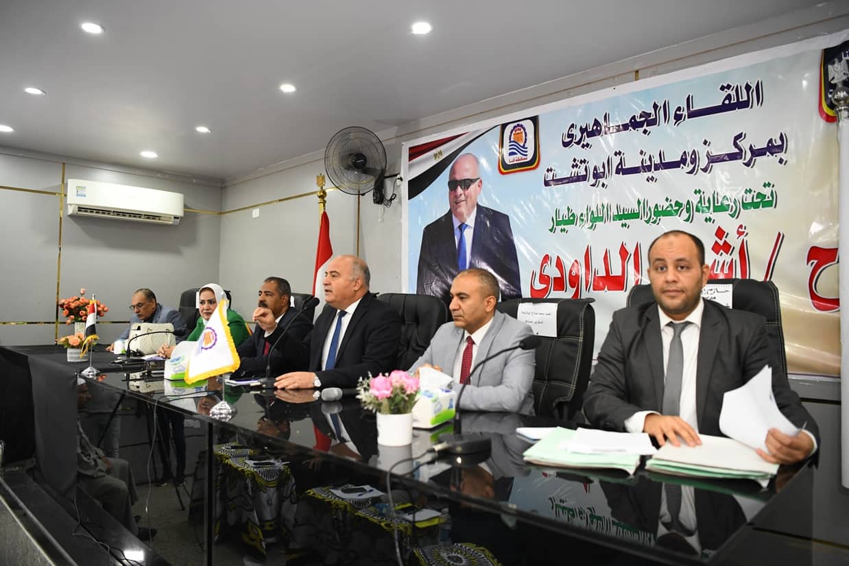 تنفيذا لتوجيهات القيادة السياسية بحل شكاوى المواطنين وتحقيق العدالة الاجتماعية، عقد اللواء أشرف الداودى محافظ قنا اللقاء الجماهيرى الأول بمركز أبوتشت، وذلك عقب انحسار جائحة كورونا، بحضور محمد صلاح أبوجريشة السكرتير العام المساعد للمحافظة، و النائبة سحر صدقى، والنائب عبد الفتاح الشحات عضو مجلس النواب، وجميع مسئولى الأجهزة التنفيذية ومئات المواطنين المتقدمين بشكاوى من أهالي المركز والقرى التابعة له.