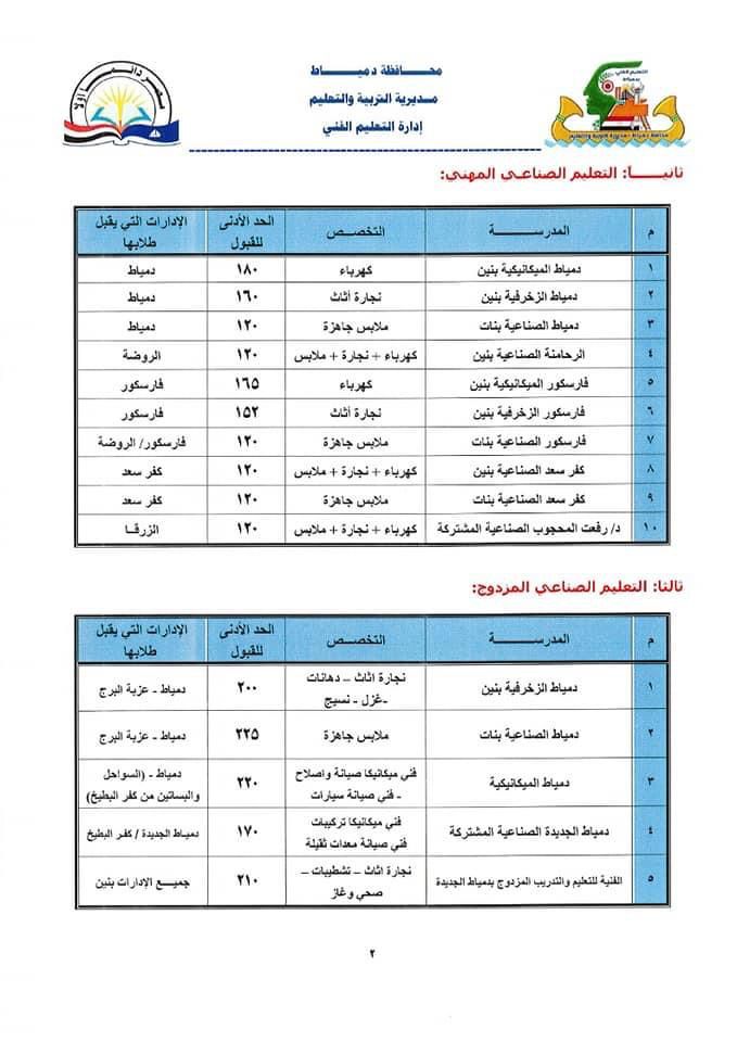 حيث تم تحديد الحد الأدنى للقبول بالصف الأول الثانوى العام بمجموع ٢٣٥ درجة، والحد الأدنى للقبول بالصف الأول الثانوى للفصول المسائية للخدمات التعليمية بمجموع ٢٠٠ درجة، كما تم تحديد الحد الأدنى للقبول بالصف الأول الثانوى الخاص بواقع ١٨٠ درجة.