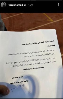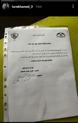 نشر طارق حامد العب الفريق الأول لكرة القدم لنادي الزمالك مستندات تفيد بعلاجة، في ألمانيا خلال الفترة الماضية وحصوله على إذن مسبق من نادي الزمالك.