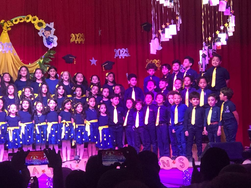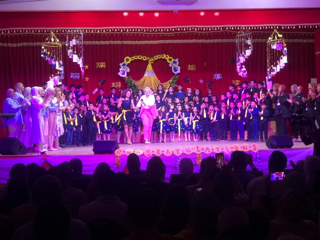 وتضمنت فقرات الحفل عدد من الاغاني الوطنية واستعراضات الاطفال ومسرحية فضلا عن استعراض الفلكلور المصري وتكريم الطلاب وذلك وسط حضور كبير من اولياء امور الطلاب..