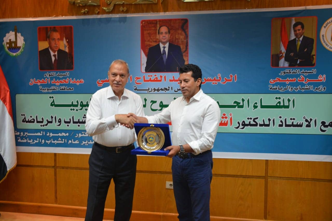 من جانبه، رحب محافظ القليوبية بزيارة وزير الشباب والرياضة لمحافظة القليوبية، فى تلك الفترة التي يشهد فيها قطاع الشباب والرياضة اهتماماً ملحوظاً من القيادة السياسية حيث توجه الدولة كافة أوجه الدعم والرعاية للشباب على المستوى الرياضي والثقافي والتوعوي في إطار استراتيجية الدولة لبناء الإنسان المصري.