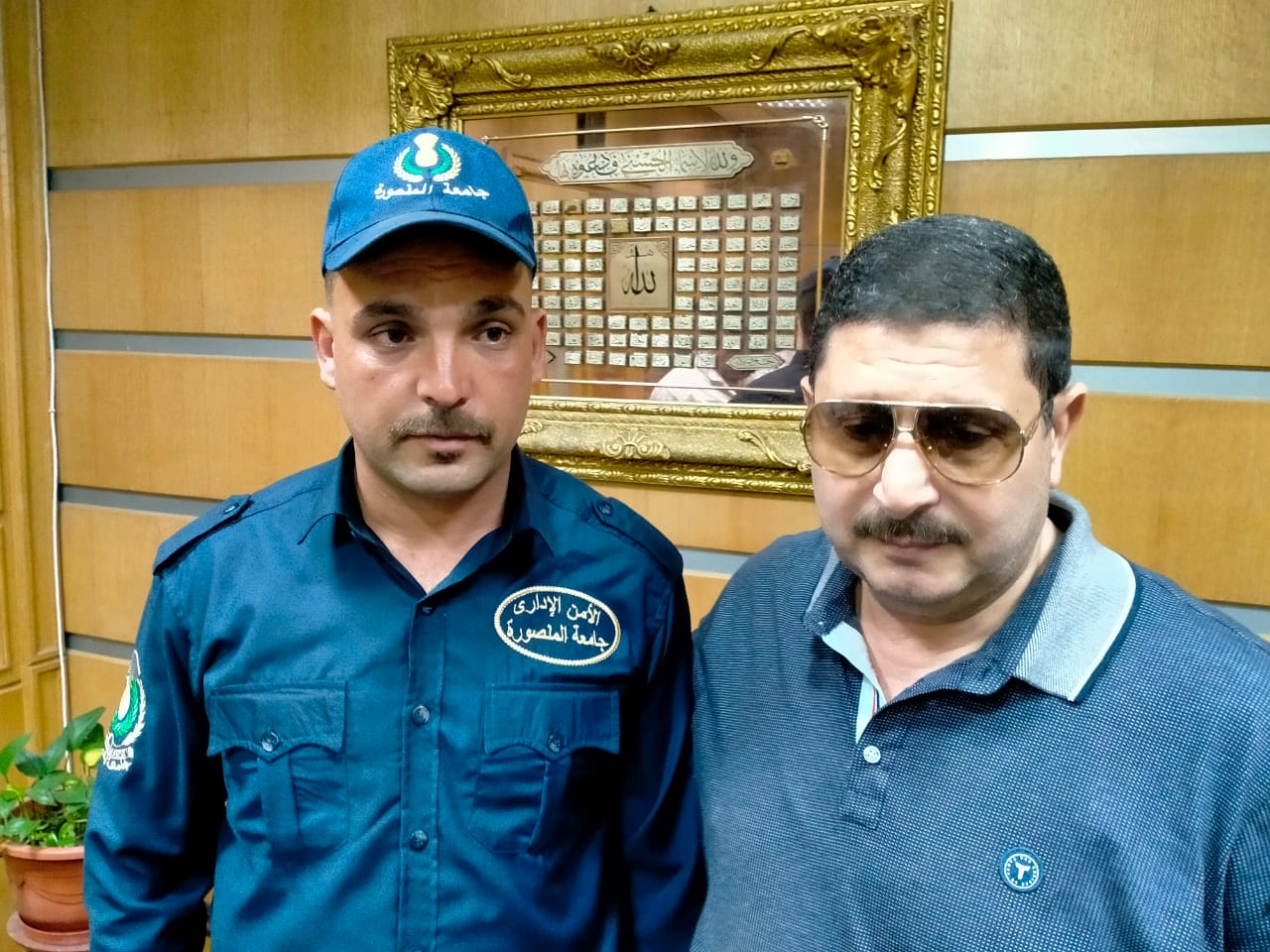 رئيس جامعة المنصورة يكرم فرد الأمن الذي تمكن من ضبط قاتل طالبة المنصورة