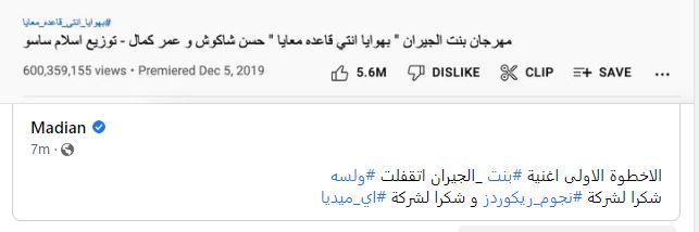 وعلق “مدين” عبر حسابه الخاص علي موقع التواصل الاجتماعي قائلًا: الخطوة الأولي “أغنية بنت الجيران اتقفلت ولسه”، ووجه الشكر لشركة نجوم ريكوردز وشركة أى ميديا.