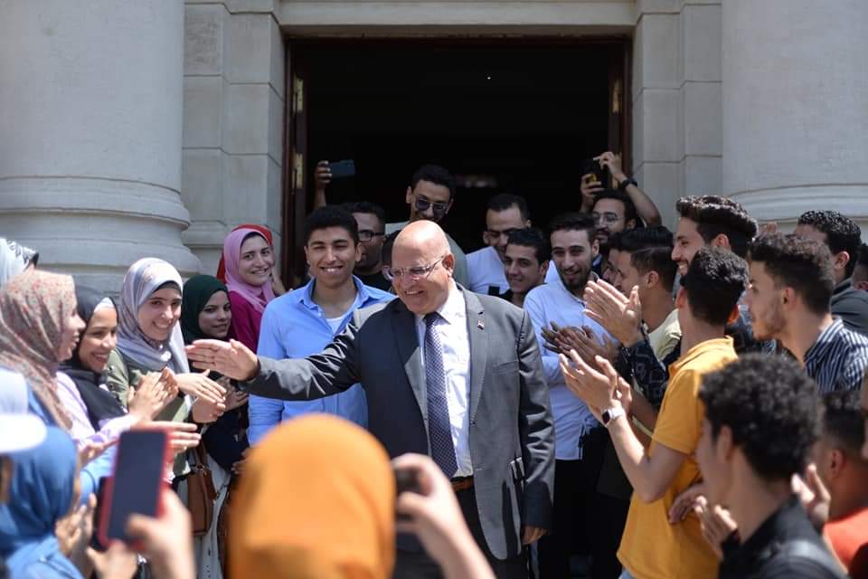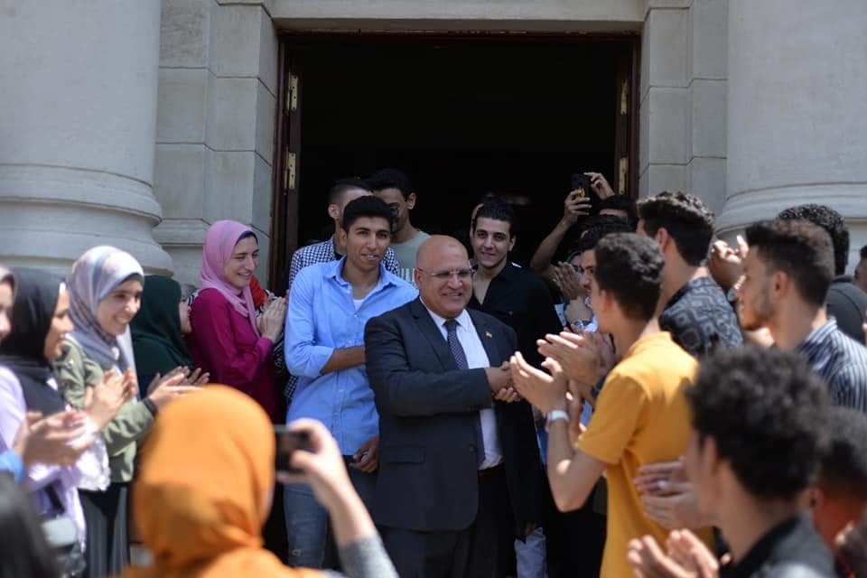 طلاب تجارة القاهرة ينظمون ممر شرفي لعميد الكلية