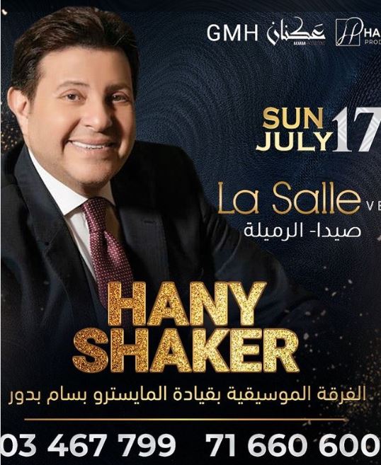 روج الفنان هاني شاكر لحفلته الجديد يوم 17 يوليو ومن المقرر إقامة الحفل في صيدا بـ لبنان، وأن الفرقة الموسيقية تحت قيادة المايسترو بسام بدور.