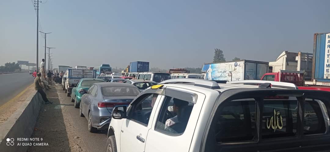 حادث مروري شهده طريق "القاهرة - الإسكندرية" الزراعي باتجاه القاهرة في المنطقة بين مركزي بركة السبع - قويسنا التابعين لمحافظة المنوفية مما تسبب في شلل حركة المرور بشكل كامل .