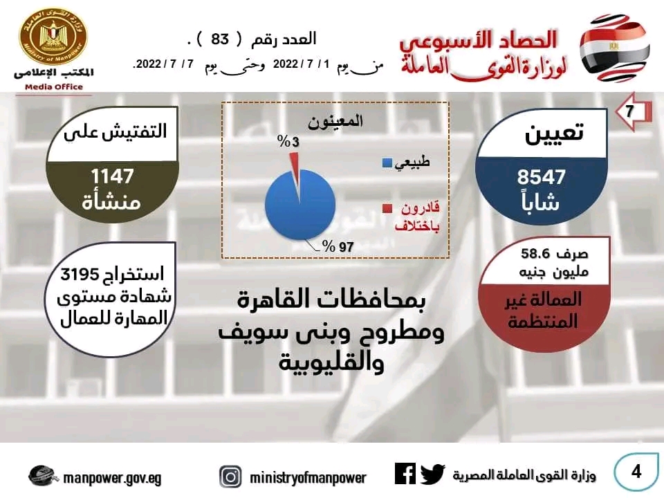 تعرف على أنشطة وزارة القوى العاملة خلال أسبوع (انفوجراف)