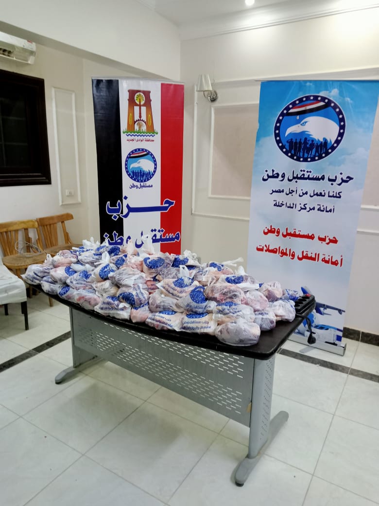 وزعت أمانة مركز الداخلة، 400 كجم لحوم أضاحي على الحالات الأولى بالراعية، حيث جرى تشكيل فرق تطوعية من شباب الحزب تولت توزيع 200 كجم لحوم أضاحي على الحالات الأولى بالرعاية بمدينة موط عاصمة المركز فيما تولت فرق أخرى توزيع 200 كجم أخرى للأولى بالرعاية بقرية " القصر " التابة للمركز، كما تم استكمال توزيع لحوم الأضاحي بباقي قرى المركز ومركزي الفرافرة وبلاط خلال الفترة الحالية بحيث يصل إجمالي ما سيجري توزيعه إلى حوالي 3 طن لحوم وذلك في إطار الدور المجتمعي للحزب في دعم المواطن.