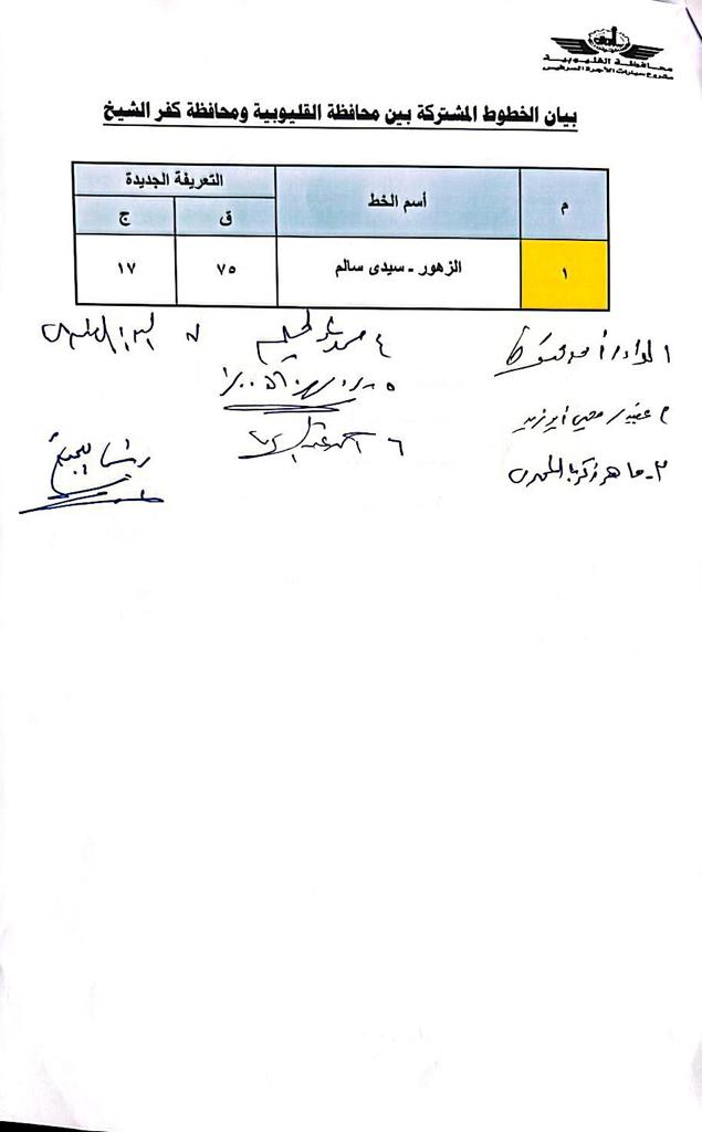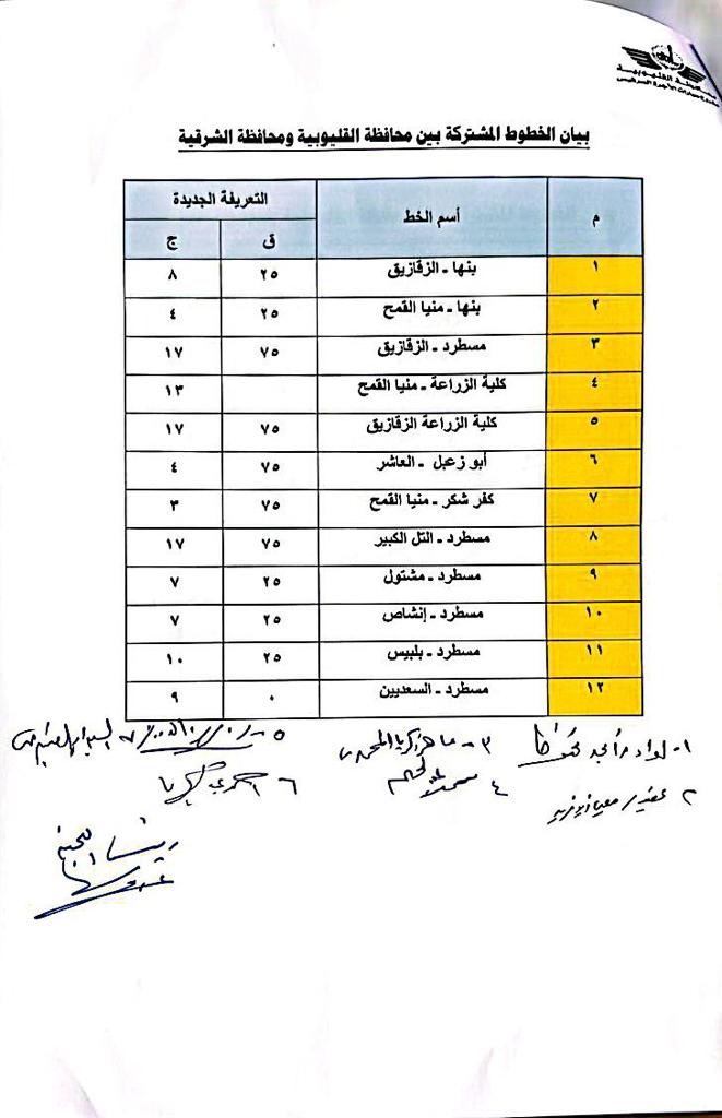 ننشر التعريفة الجديدة لمحافظة القليوبية