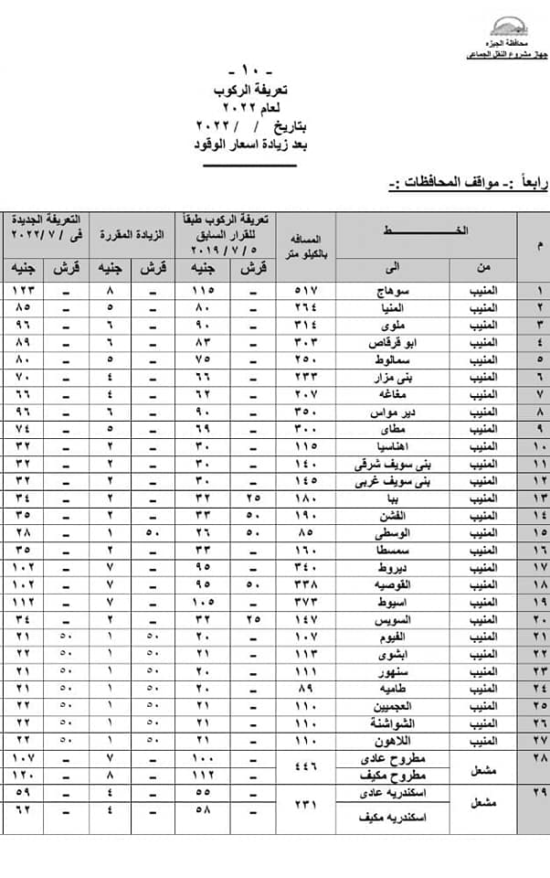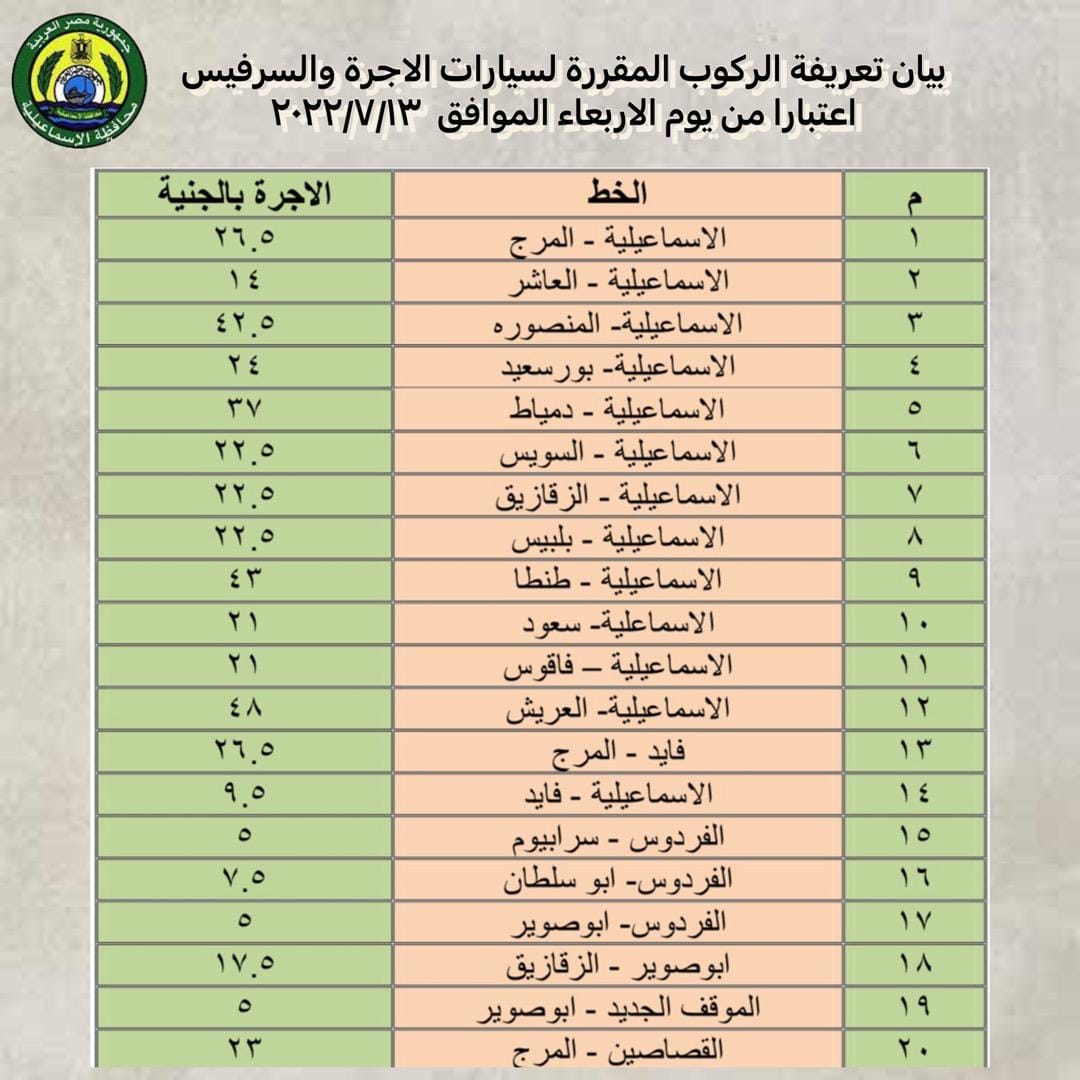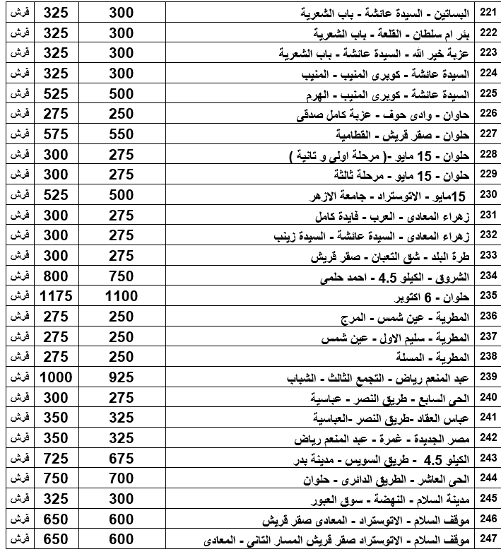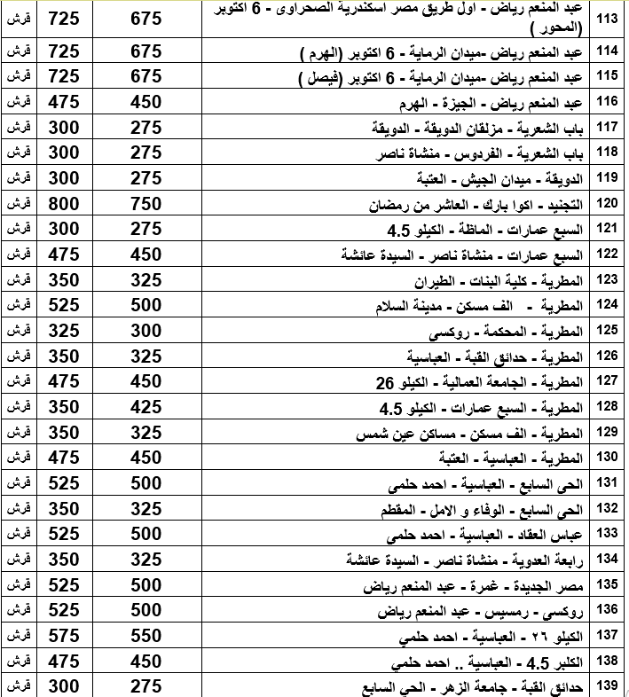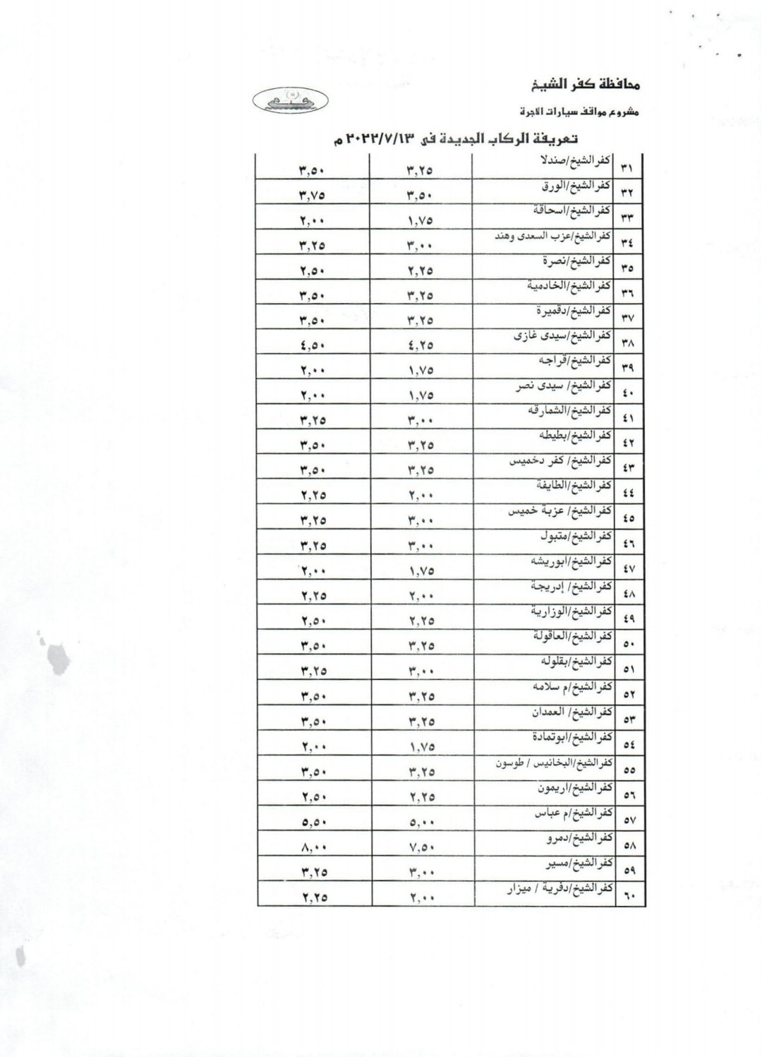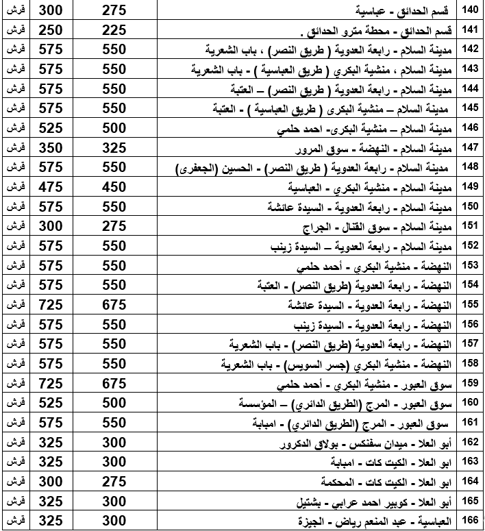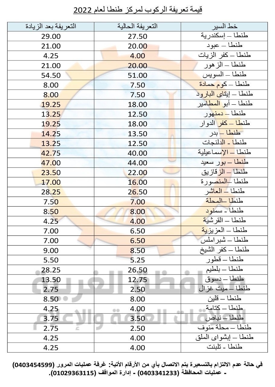 فى ضوء صدور قرار وزير البترول والثروة المعدنية بتعديل أسعار بعض المنتجات، قامت جميع محافظات الجمهورية بتعديل تعريفة ركوب السرفيس والنقل العام والأقاليم والتاكسى الأبيض، وننشر لكم تعريفة ركوب المواصلات العامة الجديدة، وسط حملات مكثفة على مواقف السيارات ومحطات الوقود لمتابعة التزام السائقين بالتعريفة الجديدة.