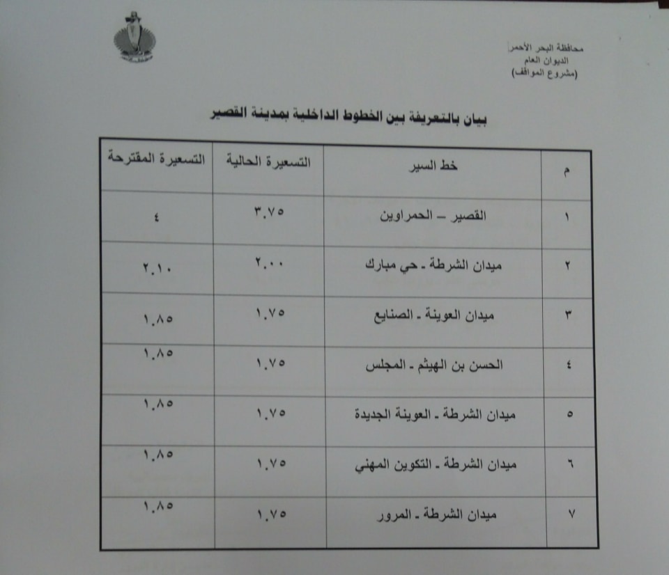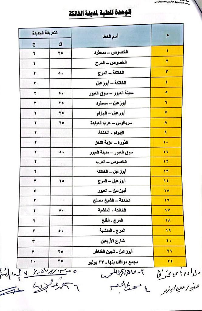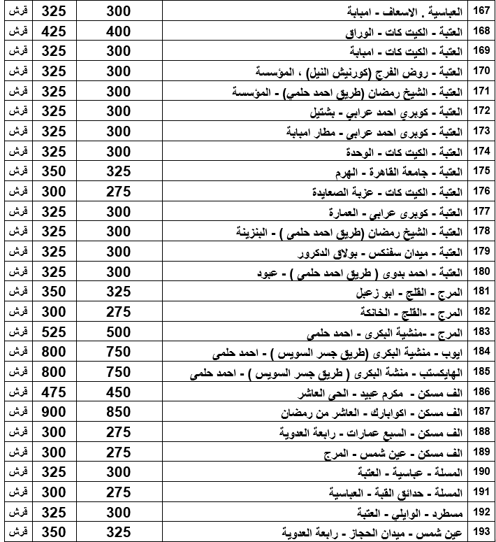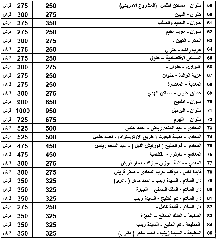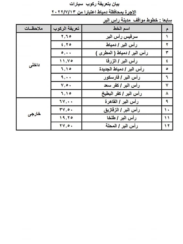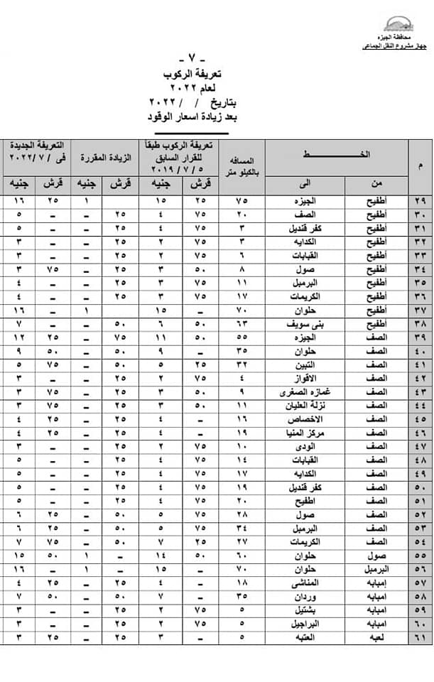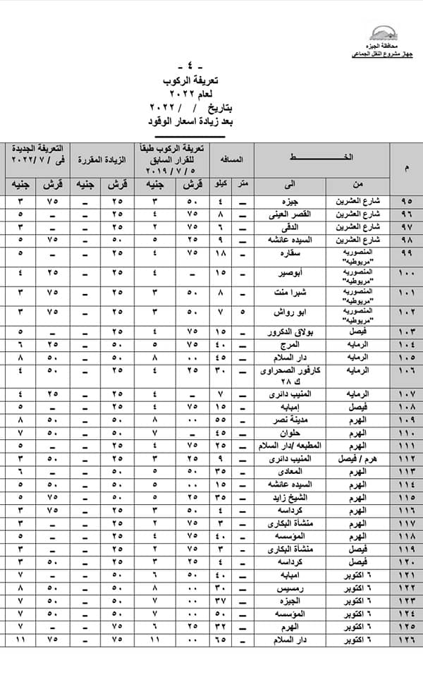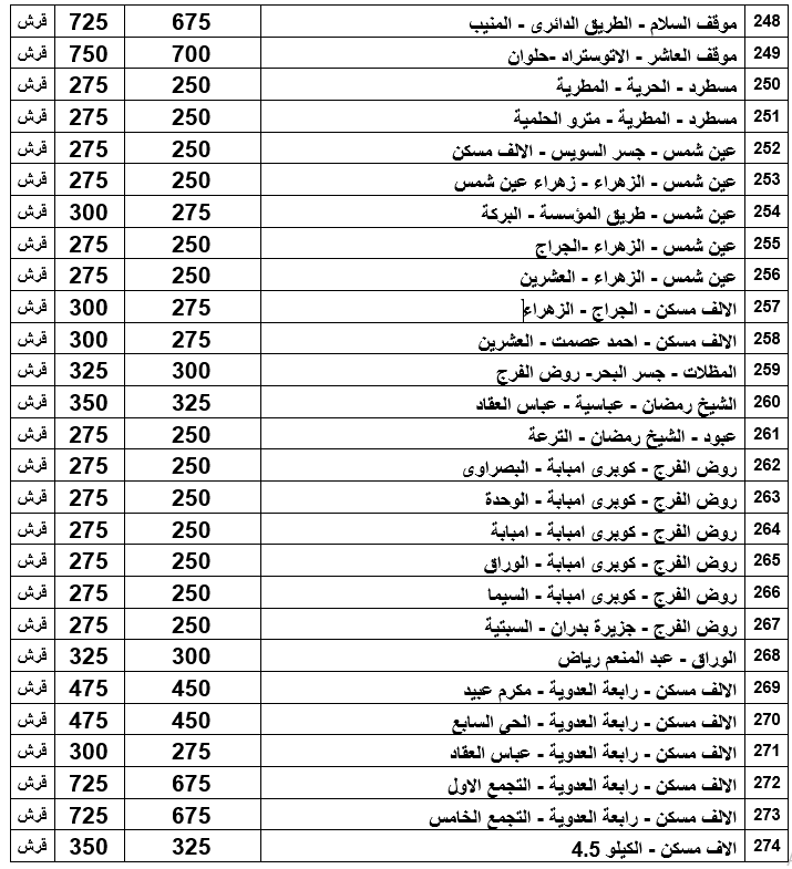 فى ضوء صدور قرار وزير البترول والثروة المعدنية بتعديل أسعار بعض المنتجات، قامت جميع محافظات الجمهورية بتعديل تعريفة ركوب السرفيس والنقل العام والأقاليم والتاكسى الأبيض، وننشر لكم تعريفة ركوب المواصلات العامة الجديدة، وسط حملات مكثفة على مواقف السيارات ومحطات الوقود لمتابعة التزام السائقين بالتعريفة الجديدة.