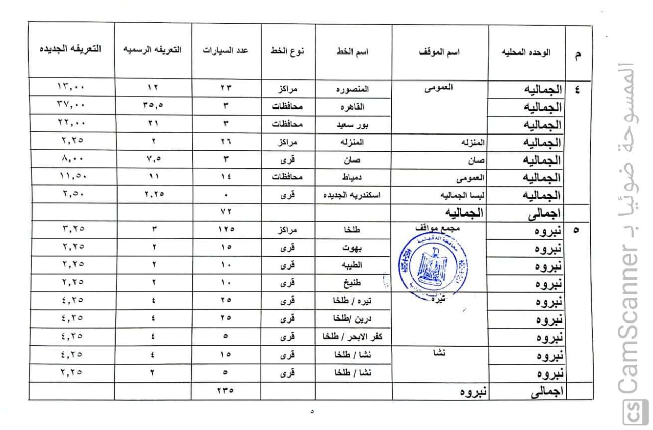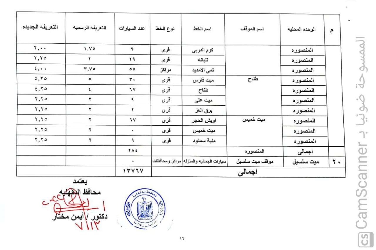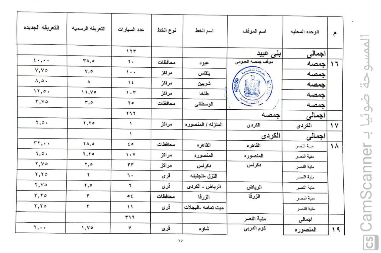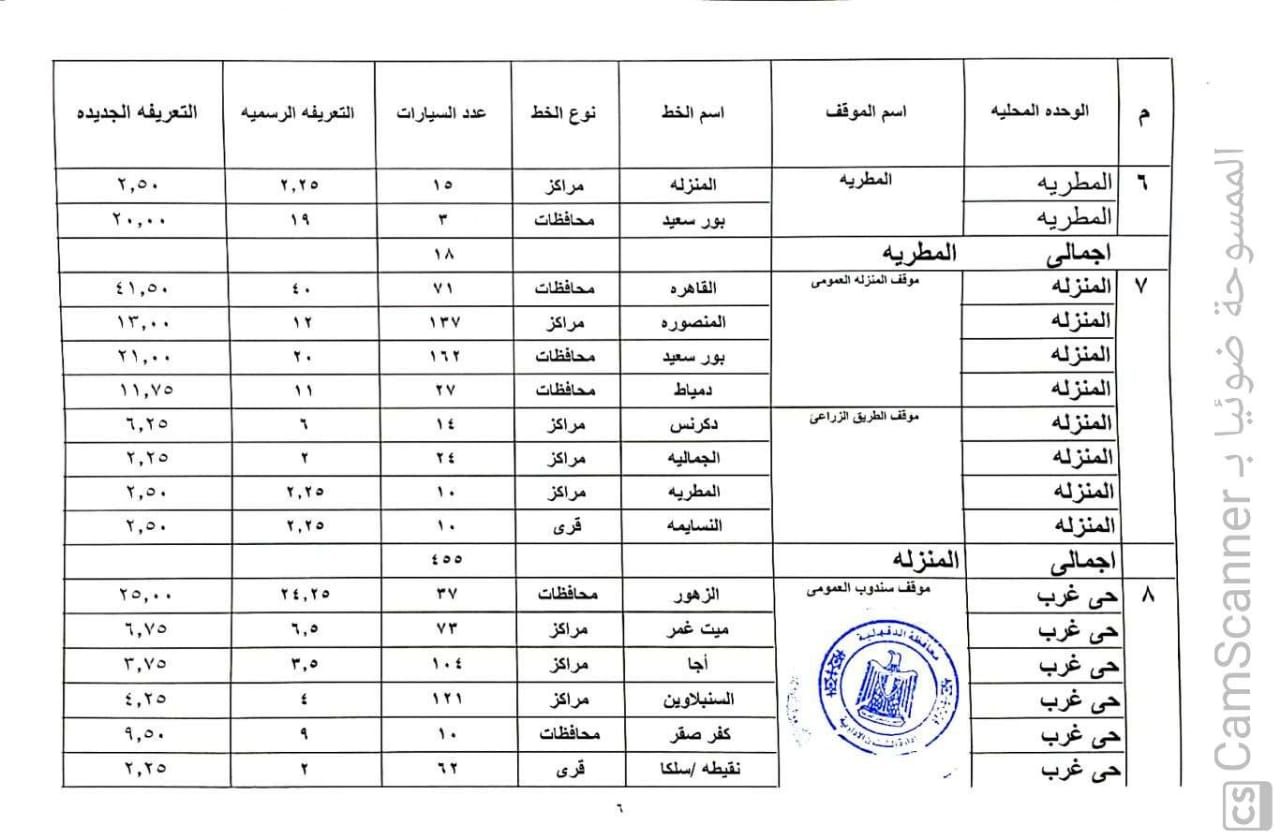 كما قرر مختار، تشكيل غرفة عمليات بديوان عام المحافظة للعمل على مدار 24 ساعة لتلقى أية شكاوى للمواطنين، وينشر موقع "مصر تايمز" التعريفة الجديدة لجميع خطوط المواصلات العامة بمحافظة الدقهلية، بعد اعتمادها.