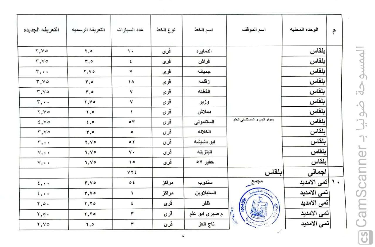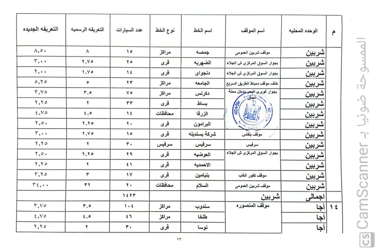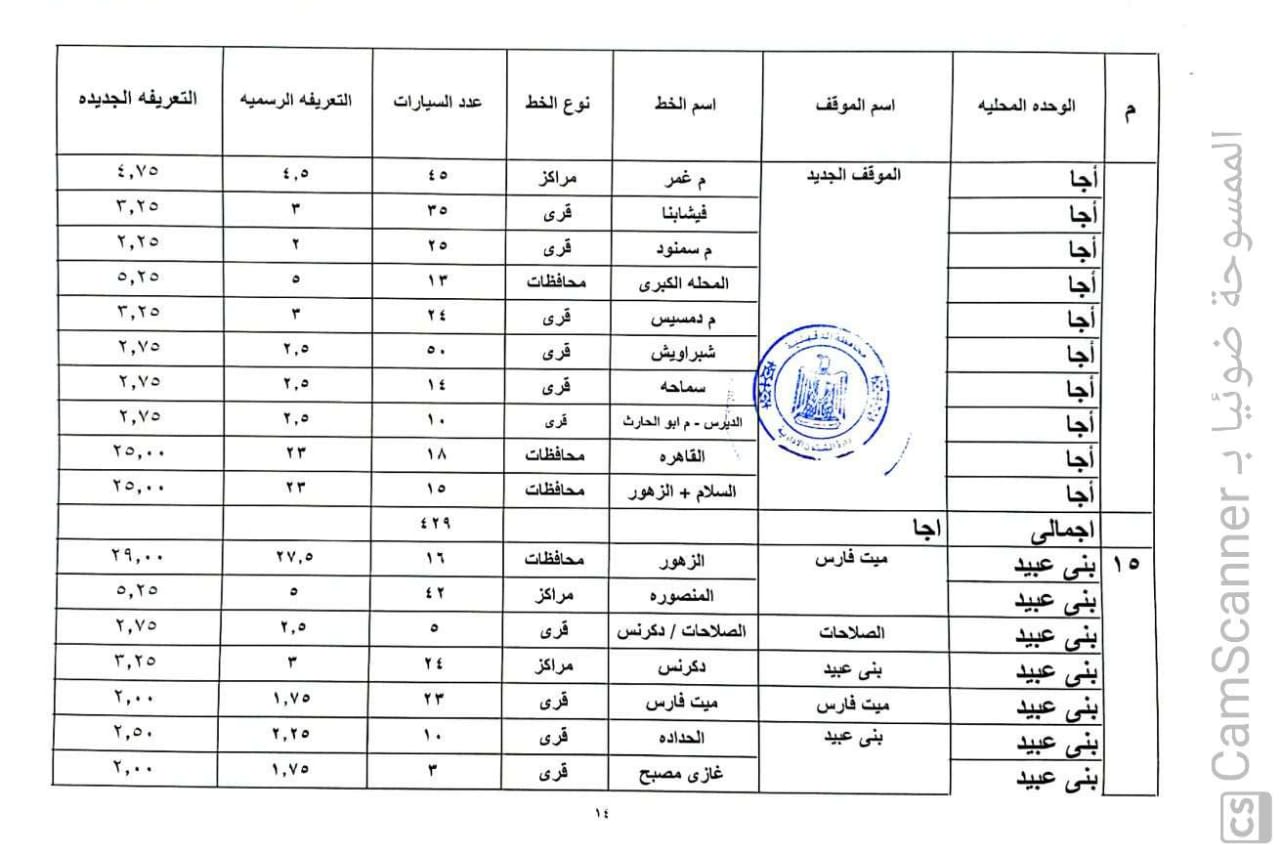 كما قرر مختار، تشكيل غرفة عمليات بديوان عام المحافظة للعمل على مدار 24 ساعة لتلقى أية شكاوى للمواطنين، وينشر موقع "مصر تايمز" التعريفة الجديدة لجميع خطوط المواصلات العامة بمحافظة الدقهلية، بعد اعتمادها.
