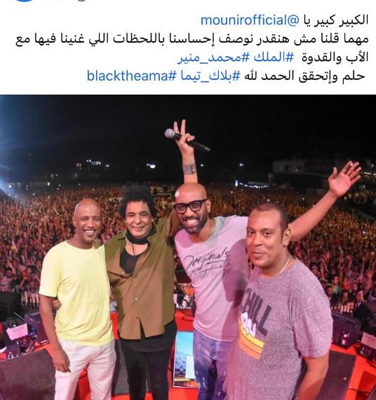 ونشر فريق بلاك تيما على موقع التواصل الإجتماعي"الفيسبوك" صورة من الحفل وعلق قائلا:" الكبير كبير مهما قلنا مش هنقدر نوصف إحساسنا باللحظات اللي غنينا فيها مع الأب والقدوة الملك محمد منير حلم واتحقق الحمد الله".