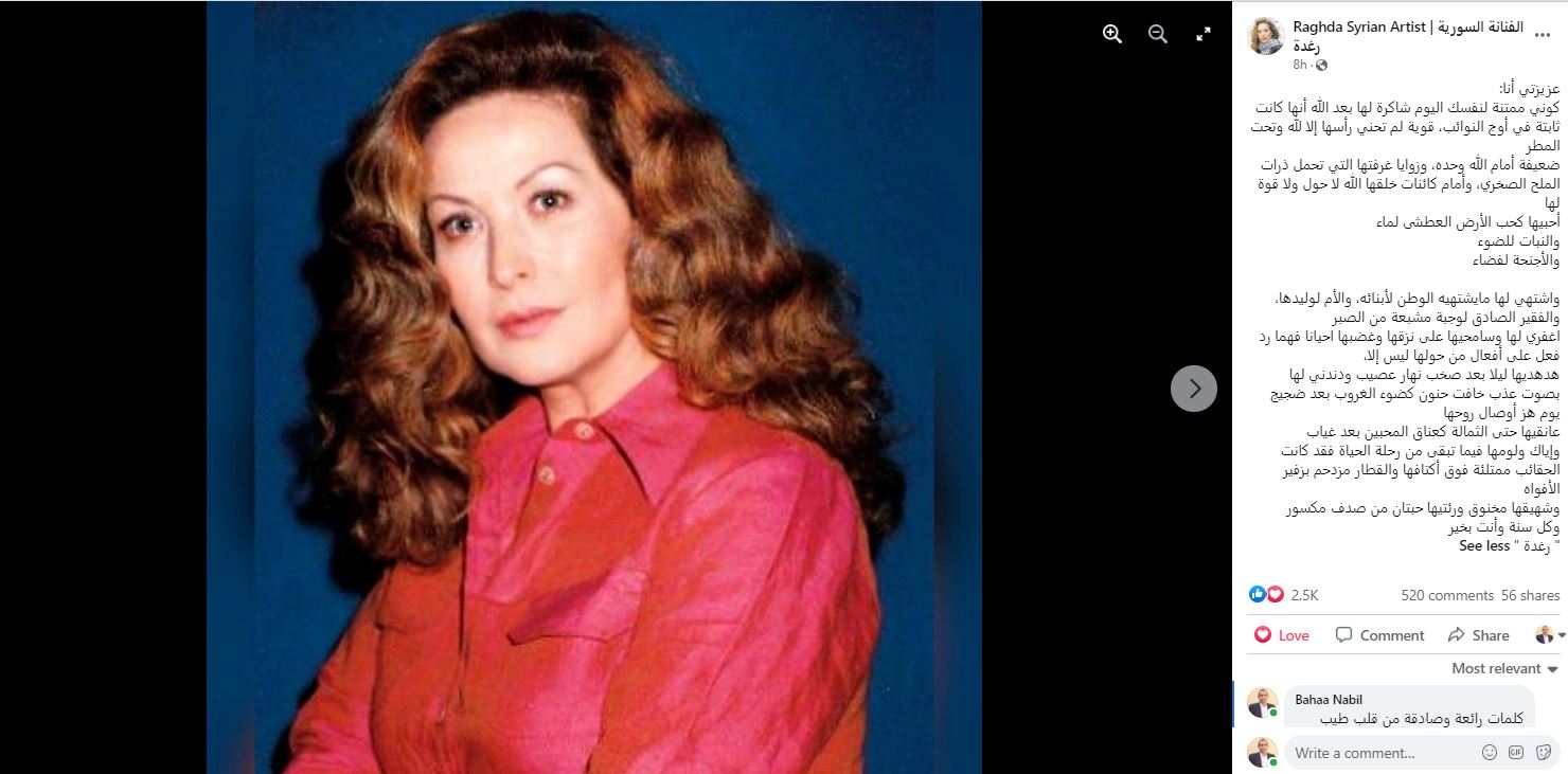رغدة توجه رسالة لنفسها بمناسبة عيد ميلادها الـ65