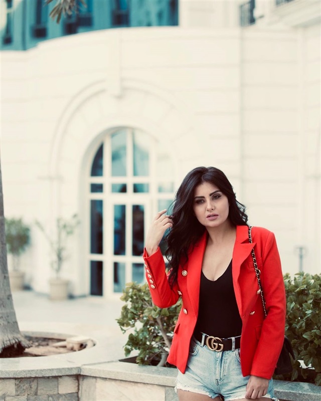 ولاقت الصور إعجاب العديد من متابعيها ، حيث ظهرت رشا بن معاوية بإطلالة مثيرة تحطف الأنظار بهوت شورت جينز و جاكت كلاسيك أحمر نارى وتوب أسود .