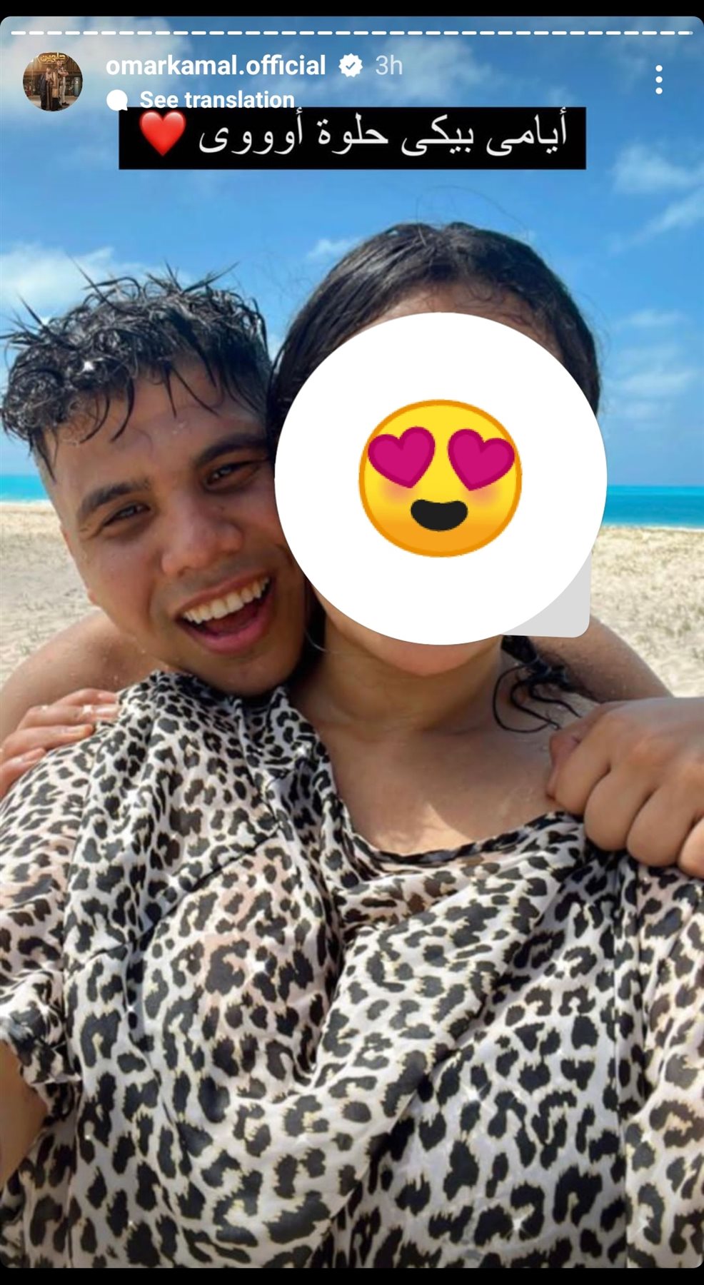 ونشر عمر كمال على موقع تبادل الصور والفيديوهات" إنستجرام “ الصورة وعلق عليها قائلا:" أيامي بيكي حلوة اوي ".