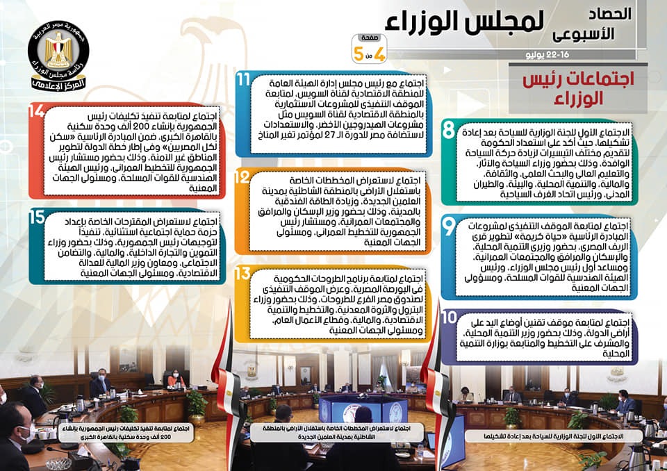 تعرف على الحصاد الأسبوعي لمجلس الوزراء (إنفوجراف)