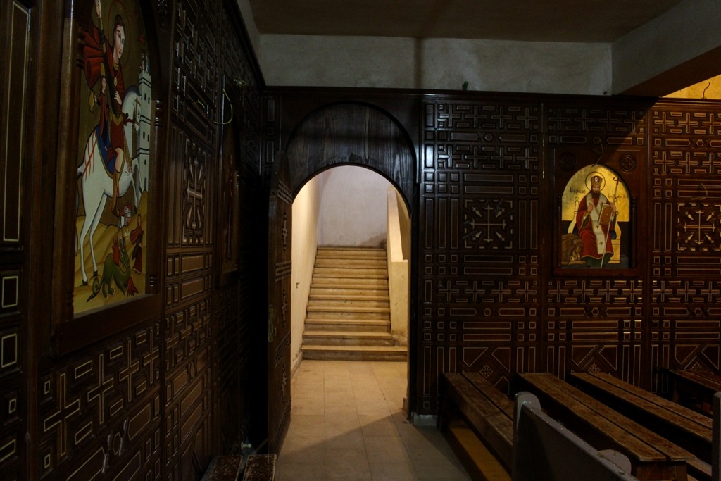 ويلفت القس تكلا إلى أن ححاب الكنيسة مصنوع من الخشب المطعم بالعاج وتتكون زخرفته من وحدات مضلعة يتوسطعا صلبان تم ترميمه مرة أخرى.