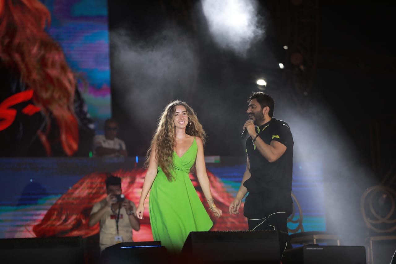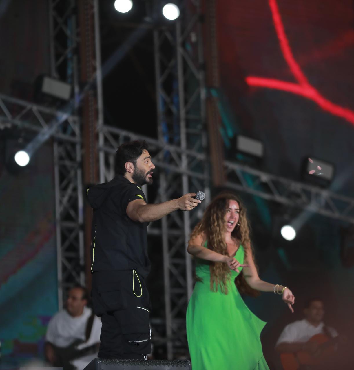 تامر حسني يشعل حفله في العلمين بمشاركة هنا الزاهد الرقص