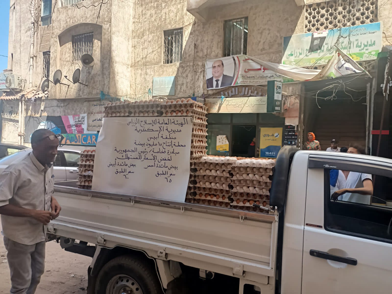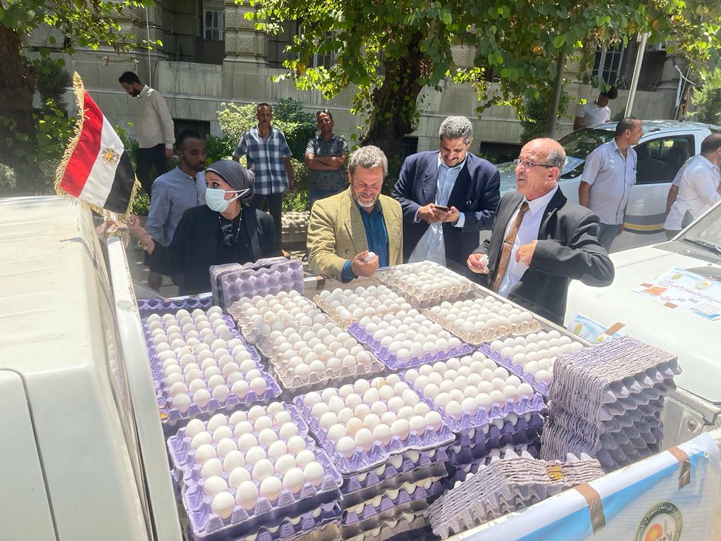 وطرحت الوزارة صباح اليوم الاحد، عدد من السيارات لبيع بيض المائدة بسعر الطبق: 62 جنيه للابيض و64 جنيه الاحمر ، امام ديوان الوزارة بالدقي للبيع للمواطنين ، فضلا عن منافذ متنقلة للبيع بنفس الاسعار في محافظات: كفرالشيخ، اسيوط، الاسكندرية، البحيرة، الدقهلية، والمنوفية، فضلا عن طرح كميات كبيرة ايضا بجميع منافذها الثابتة بالمحافظات المختلفة، من انتاج مشروعات الوزارة ومزارعها ومحطاتها المختلفة، ومن خلال التنسيق مع الاتحاد العام لمنتجي الدواجن.