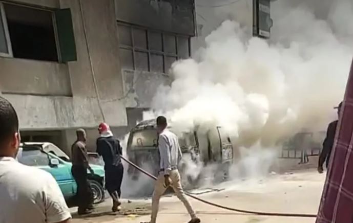 اندلاع حريق نشب في سيارة خلف مديرية أمن البحيرة (صور)