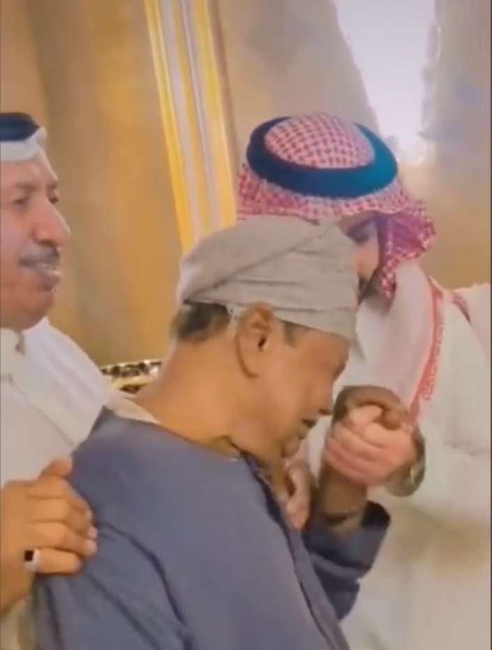 رجل أعمال سعودي يقبل رأس مصري عمل معه لمدة 40 عاما وربي أبناءه