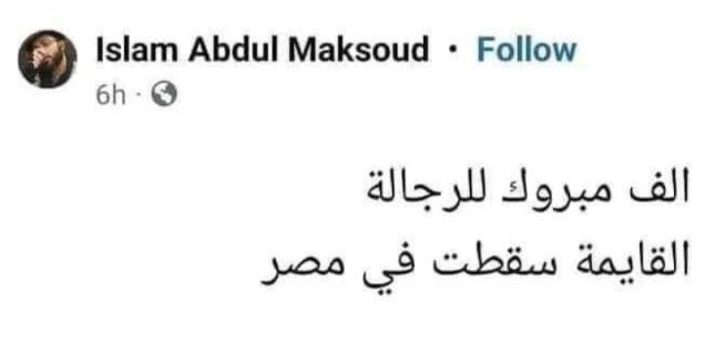 وبدأ الموضوع عندما كتب شاب يدعى إسلام عبد المقصود تدوينة يقول فيها: “ألف مبروك يا رجالة القائمة سقطت في مصر”، وهو ما أثار حالة ن الجدل الواسع عبر مواقع التواصل الاجتماعي.