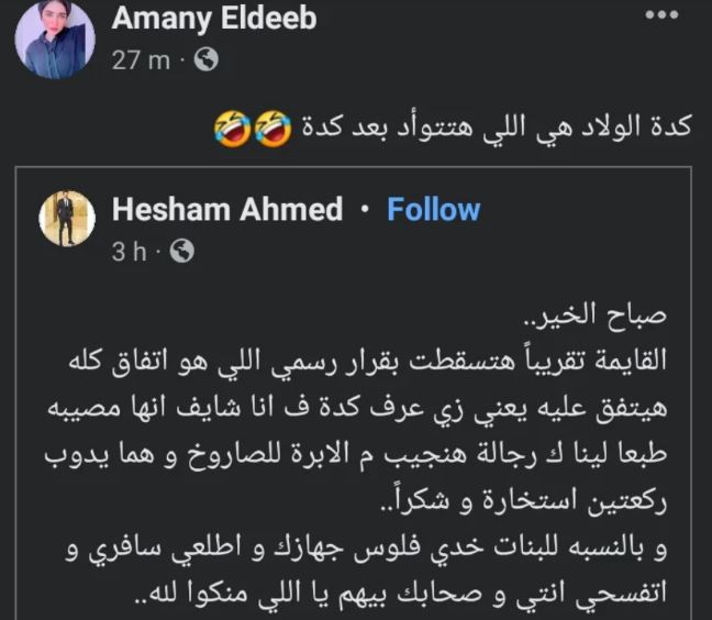 وانتشرت عدد من التعليقات عبر مواقع التواصل الاجتماعي، ساخرين من إلغاء القايمة “قائمة المنقولات الزوجية”، باعتبار أنها حق للزوجة، وان الزوج مُكلف بتكفل زوجته وأسرته.