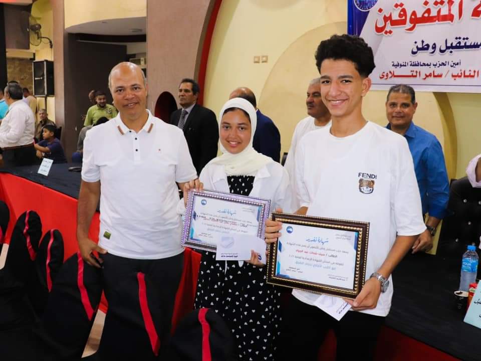 نظمت أمانة مركز اشمون بحافظة المنوفية ، حفل تكريم أوائل الطلبة المتفوقين، من الشهادة الإعدادية لعام 2022 علي مستوي دائرة المركز، وانطلقت فعاليات الحفل بقاعة ريم لاند بالكوادي بحضور أعضاء وقيادات ونواب الحزب بالمحافظة، وأسر وأولياء أمور الطلاب والطالبات، كما شهد الحفل حضور من المعلمين والمعلمات والمتفوقين والمتفوقات من كافة مدراس الإدارة التعليمية علي مستوي قري ومدينة أشمون، وفي نهاية الحفل تم توزيع شهادات التقدير والجوائز المالية والعينية علي المتفوقين والمتفوقات.
