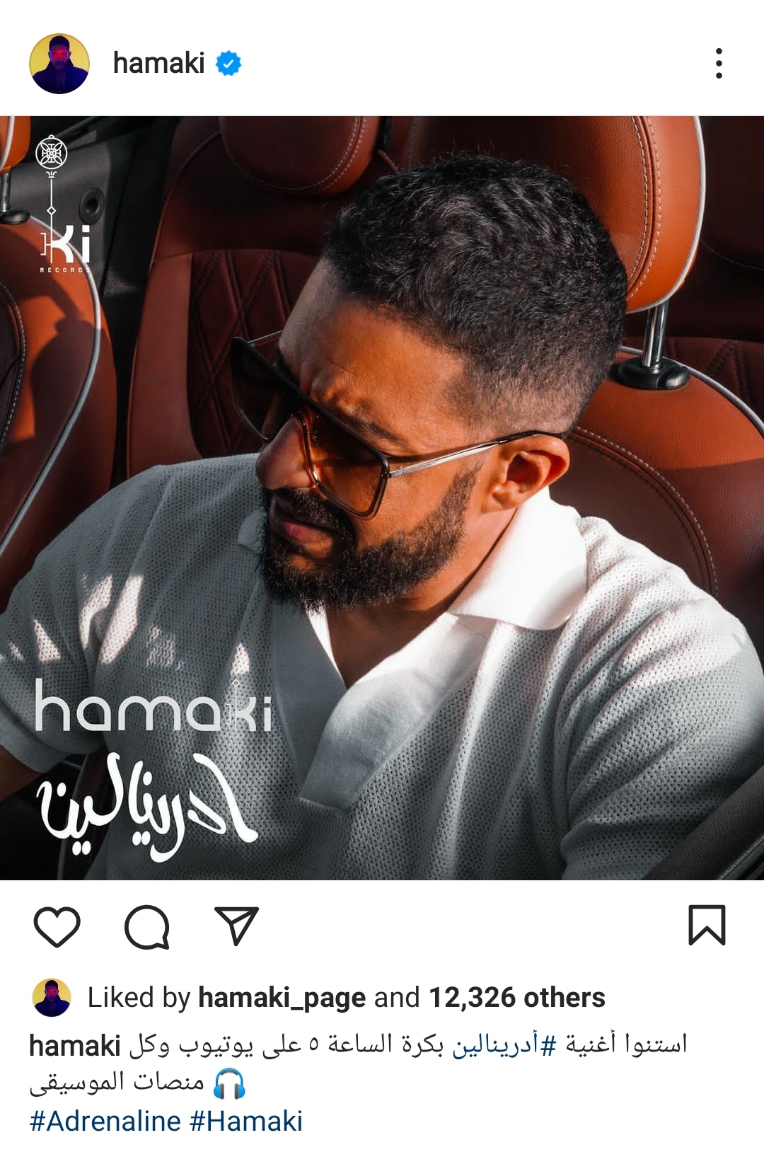 ونشر محمد حماقي على موقع تبادل الصور والفيديوهات إنستجرام بوستر الأغنية وعلق عليها قائلا:" إستنوا أغنية أدرينالين بكره الساعة ٥ على اليوتيوب وكل منصات الموسيقى".