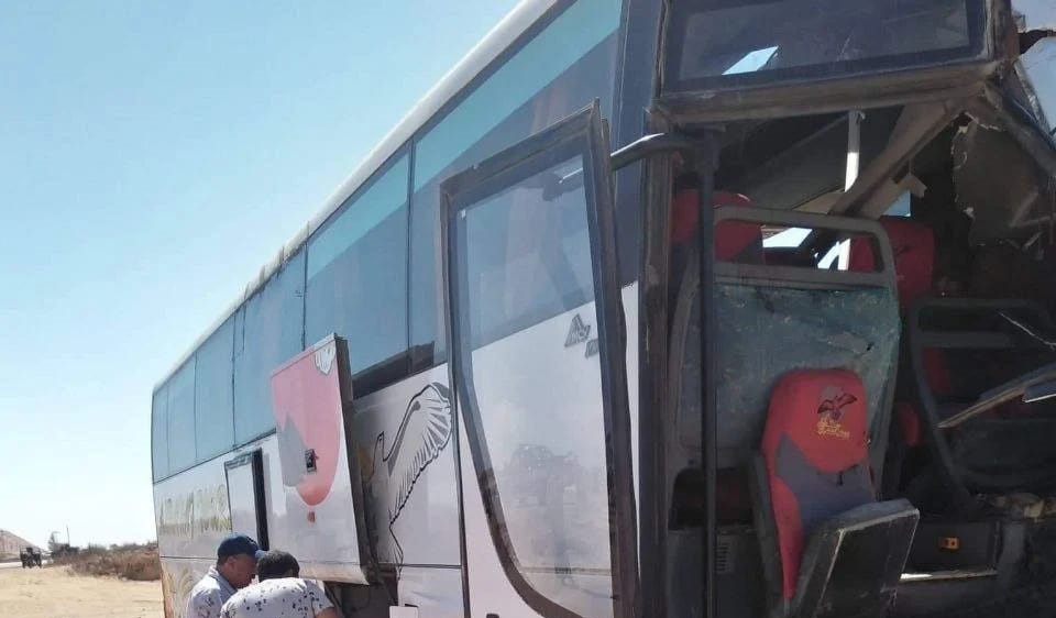 الصور الأولى من حادث تصادم أتوبيس بسيارة نقل ثقيل في مطروح ومصرع وإصابة 45 شخصًا