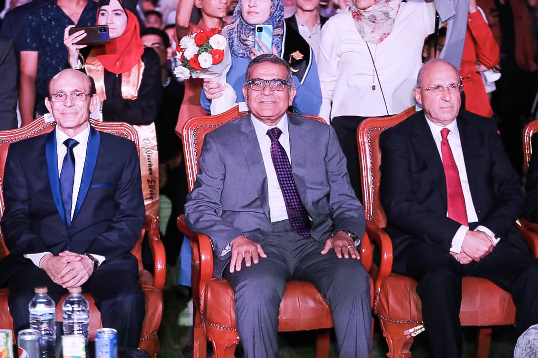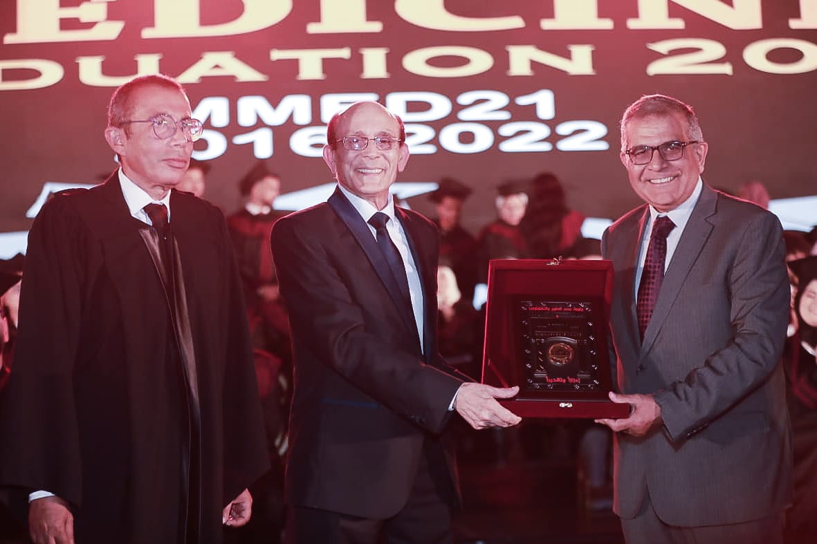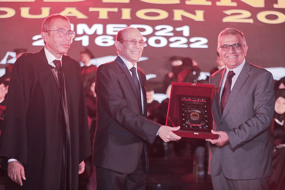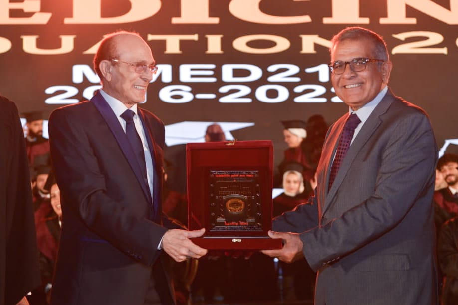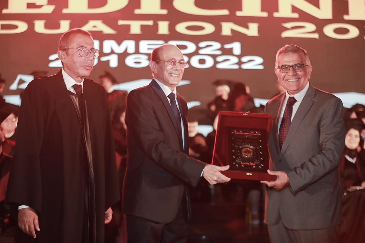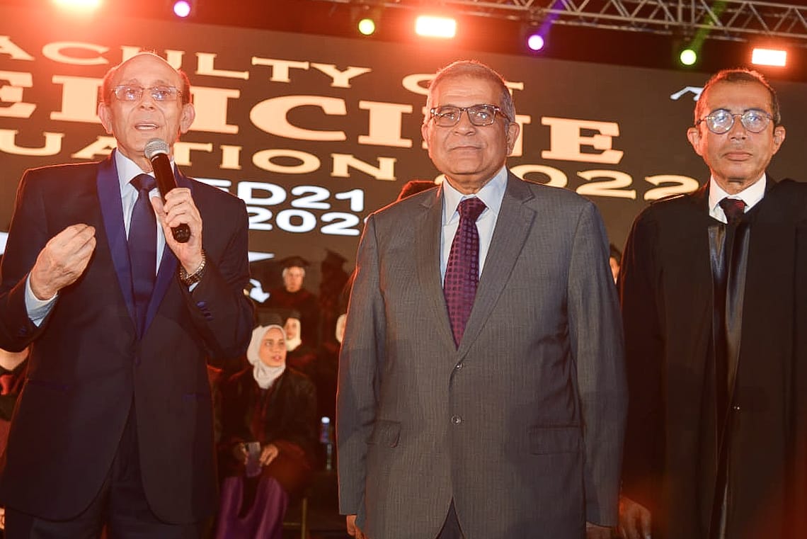 وقال الدكتور عادل عدوي، وزير الصحة الأسبق، "الف مبرووك لزملائي الطلاب فهم اصبحوا أطباء زملاء مهنة واقدم التحية لكل أب وام في هذا الحفل، فالطبيب في المجتمع المصري يسمى الحكيم فانتم حكماء الزمان وافراد المجتمع يطلبون منكم المشورى، تاليا قوله تعالى "فمن يؤتى الحكمة فقد اوتي خيرا كثيرا"، ولا ننسى مرور العالم بجائحة كورنا فكان الطبيب في صدارة المشهد لمواجهة الجائجة، وانتم تختلفون عن كل المهن لا يراقبكم الا الله فضعو الله نصب اعينكم والمريض في اعماق قلوبكم وتحية لكل من اسهم بالانتهاء بكم من مراحل التعلم واجبة للراحلة الدكتورة سعاد كفافى".