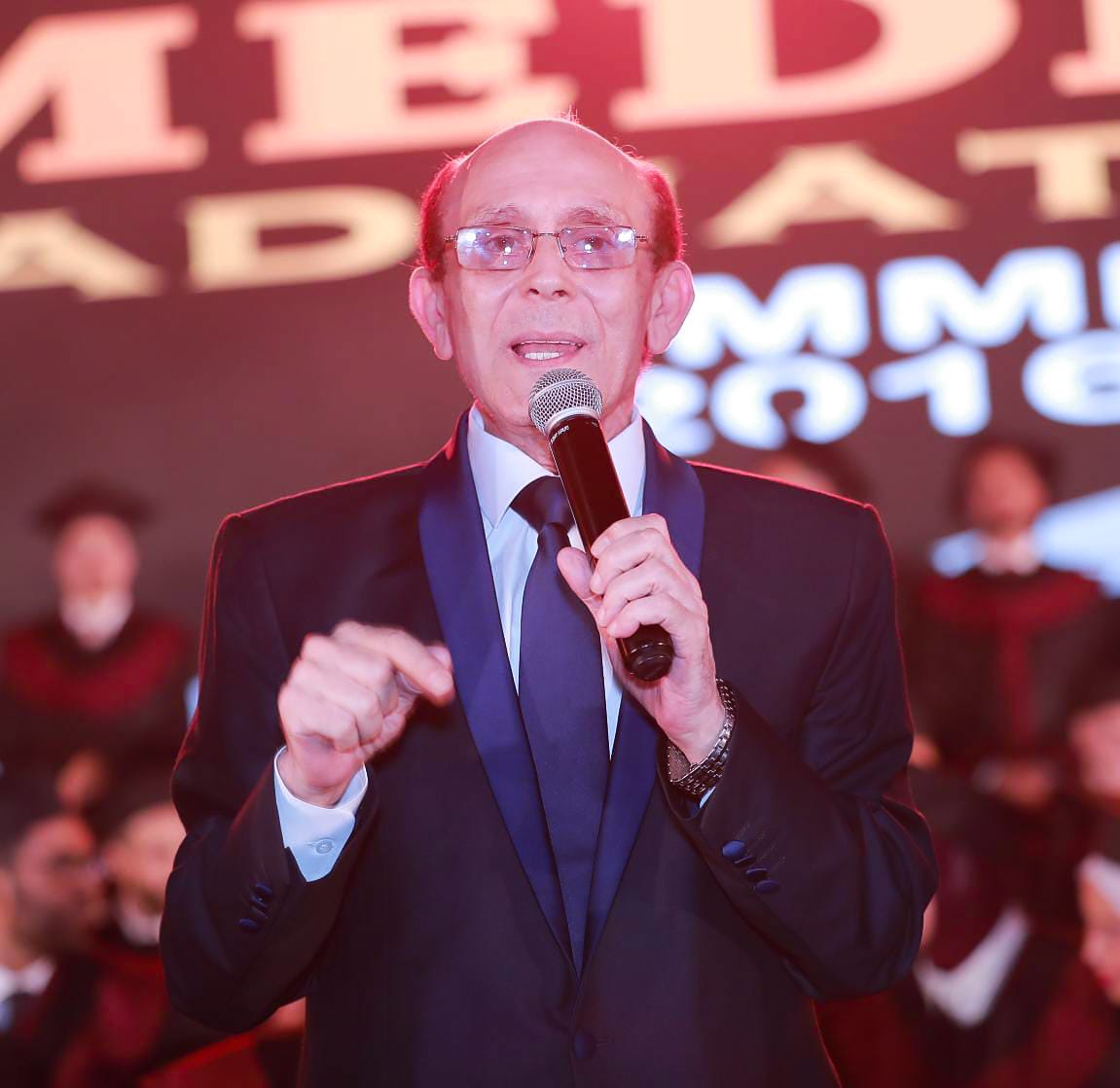 ورحب د. أشرف حيدر بضيوف الحفل قائلا: "نتشرف بوجود قامات علمية بيننا مثل الفنان القدير محمد صبحي الذي تعلمنا على أعماله الفنية القيمة، والدكتور عادل عدوي وزير الصحة الأسبق، والمستشار الثقافي لدولة الأردن، عبدالله الحراحشة، واليوم في حفل تخرج طلاب الطب البشري جامعة مصر للعلوم والتكنولوجيا؛ نشارك الطلاب فرحتهم بعد الانتهاء من مشوارهم التعليمي والاستعداد لخوض تجارب الحياة العملية متسلحين بالعلم".