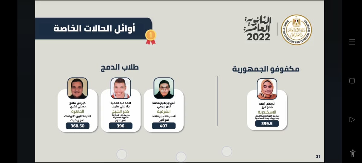 ويستعد الآن الطلبة وأولياء الأمور فى سماع أسماء أوائل الثانوية العامة على مستوى الجمهورية حيث ستعلنها وزارة التربية والتعليم والتعليم الفنى بعد لحظات قليلة من الآن