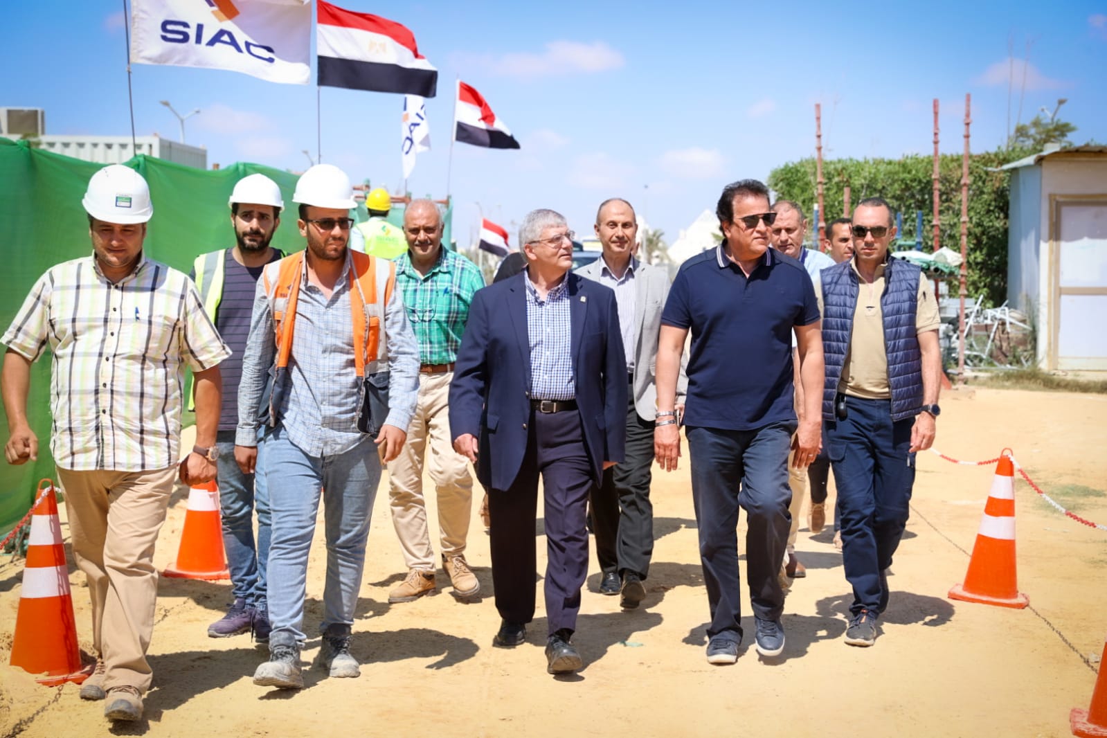 في بداية جولته، تفقد وزير التعليم العالي مقر الجامعة المصرية اليابانية للعلوم والتكنولوجيا ببرج العرب، برفقة د. عمرو عدلي رئيس الجامعة، واطلع الوزير على الموقف التنفيذي للأعمال الإنشائية الجارية، موجهًا بسرعة الانتهاء منها وفقًا للجداول الزمنية المحددة.