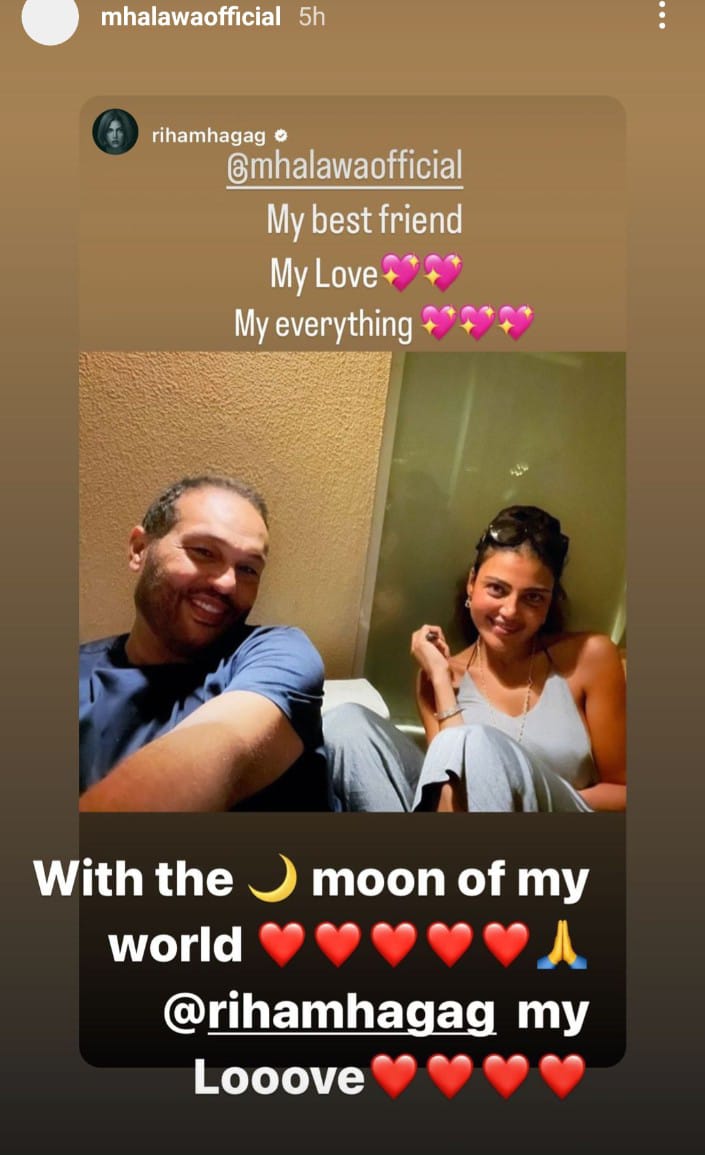 تغازل رجل الاعمال محمد حلاوة بزوجتة الفنانة ريهام حجاج علي موقع التواصل الاجتماعي "انستجرام"وعلق "حلاوة" عليها قائلًا:"كل شئ مع العظيمة والحبيبة والجميلة".