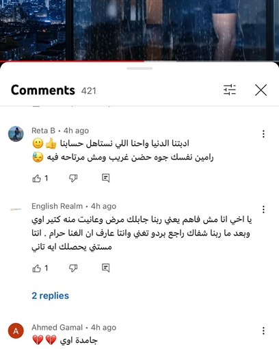 قال المتنمر في تعليقه: "يا أخي أنا مش فاهم يعني ربنا جابلك مرض وعانيت كتير أوي وبعد ما ربنا شفاك راجع برضه، تغني وأنت عارف أن الغنا حرام. أنت مستنى يحصلك أيه تاني".