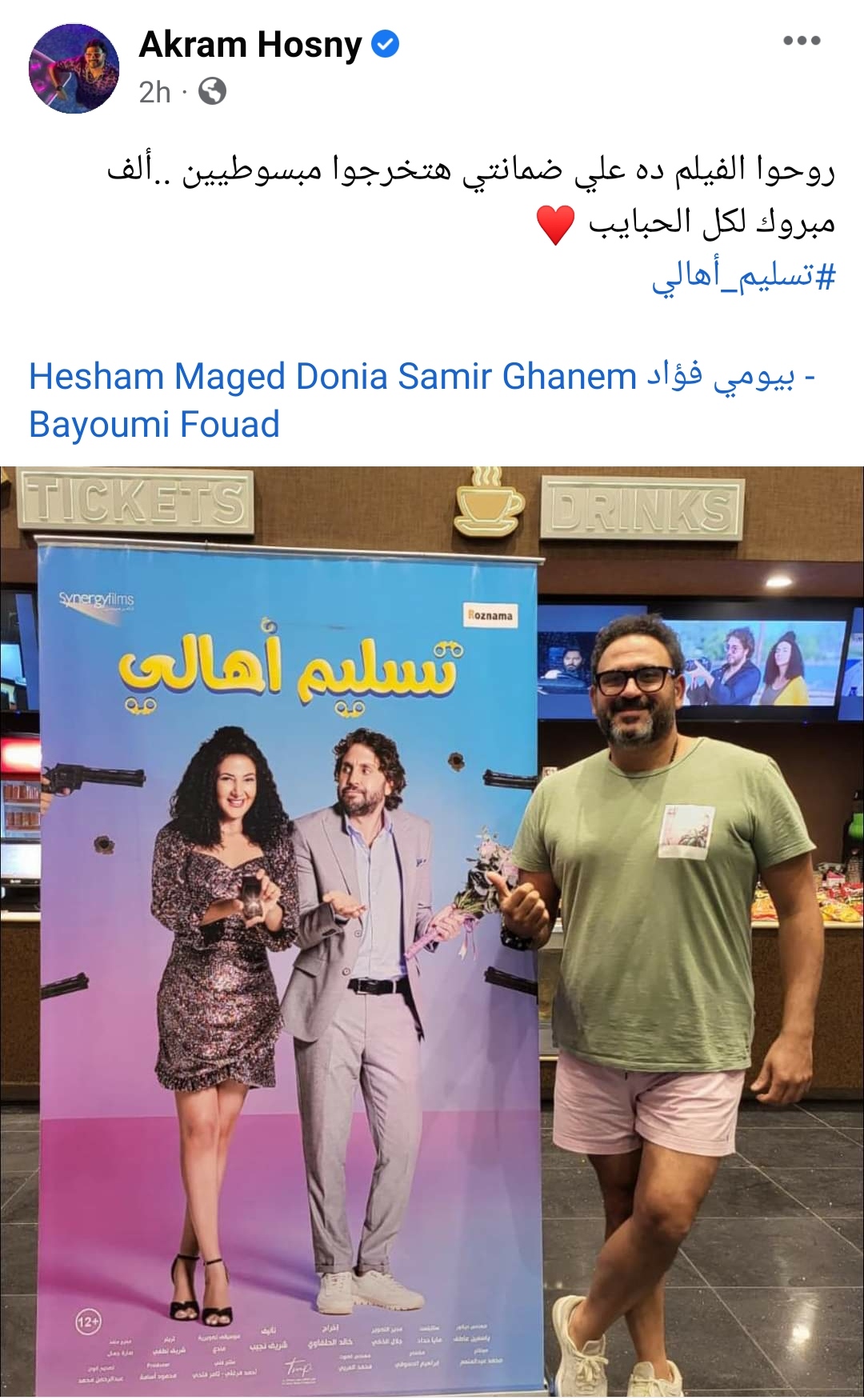 ونشر أكرم حسني على موقع التواصل الإجتماعي" الفيسبوك " علق قائلا:" أدخلوا الفيلم على ضمانتي هتخرجوا مبسوطين".