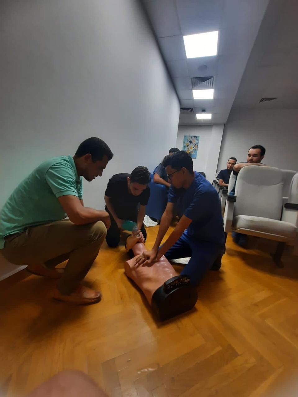 تستمر الدورة التدريبة حتى 18 أغسطس الجارى، وتهدف إلى تدريب 100 % من العمالة التمريضية بالمستشفي وتدريبهم على الانعاش القلبي الرئوي الأساسي والمتقدم والدور التمريضي أثناء الإنعاش.