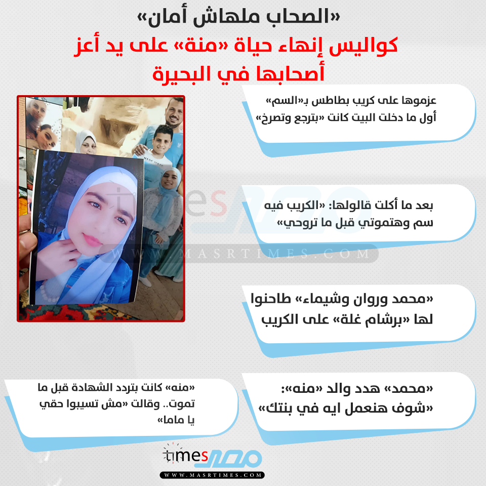 إنهاء حياة الطالبة منة على يد أعز أصحابها في البحيرة