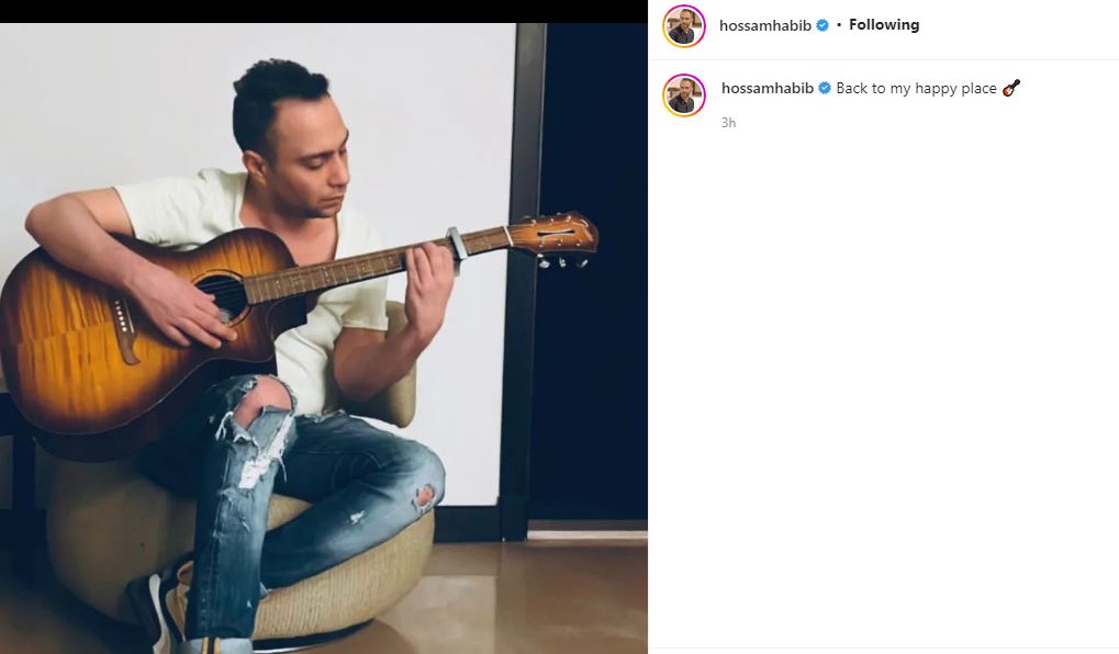 نشر الفنان حسام حبيب صورة له عبر صفحته الشخصية على موقع التواصل الاجتماعي " انستجرام" وهو يجلس ممسكا بجيتاره وعلق عليها كاتبا: "عدت لمكاني السعيد".
