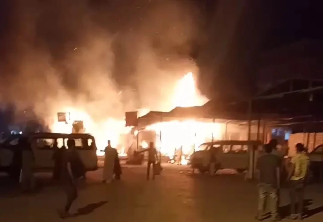 حريق هائل بموقف الأقاليم بإدفو بأسوان