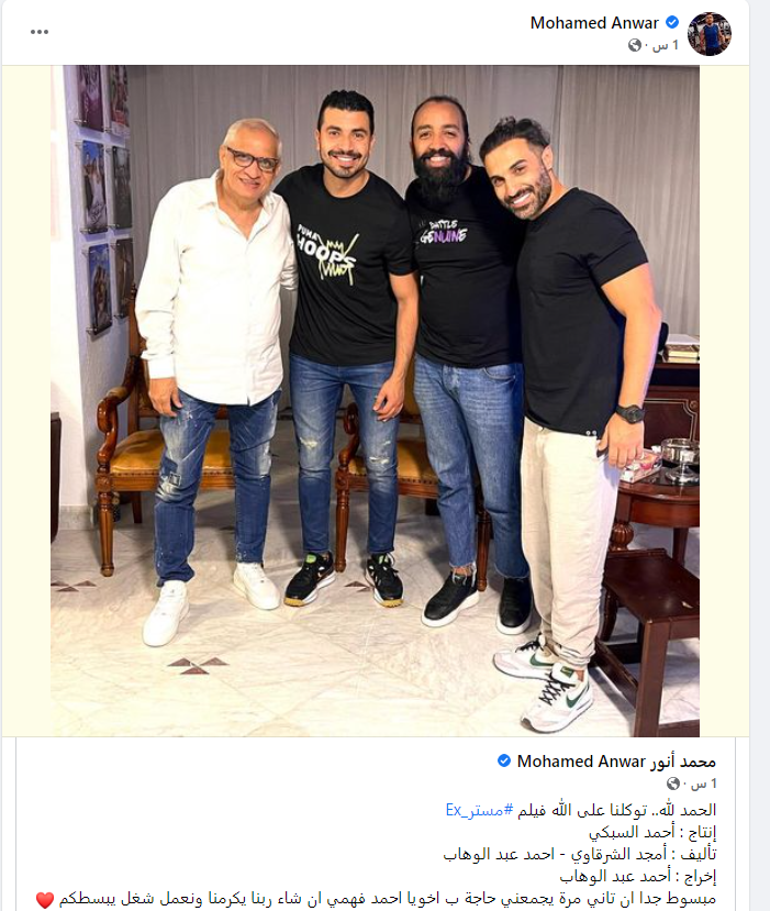 نشر محمد أنور على صفحته على موقع تبادل الصور والفيديوهات إنستجرام قائلا " الحمد لله.. توكلنا على الله فيلم مستر Ex إنتاج أحمد السبكي، تأليغ أمجد الشرقاوي وأحمد عبد الوهاب، وإخراج أحمد عبد الوهاب".