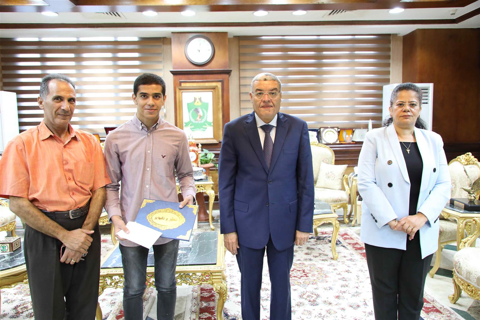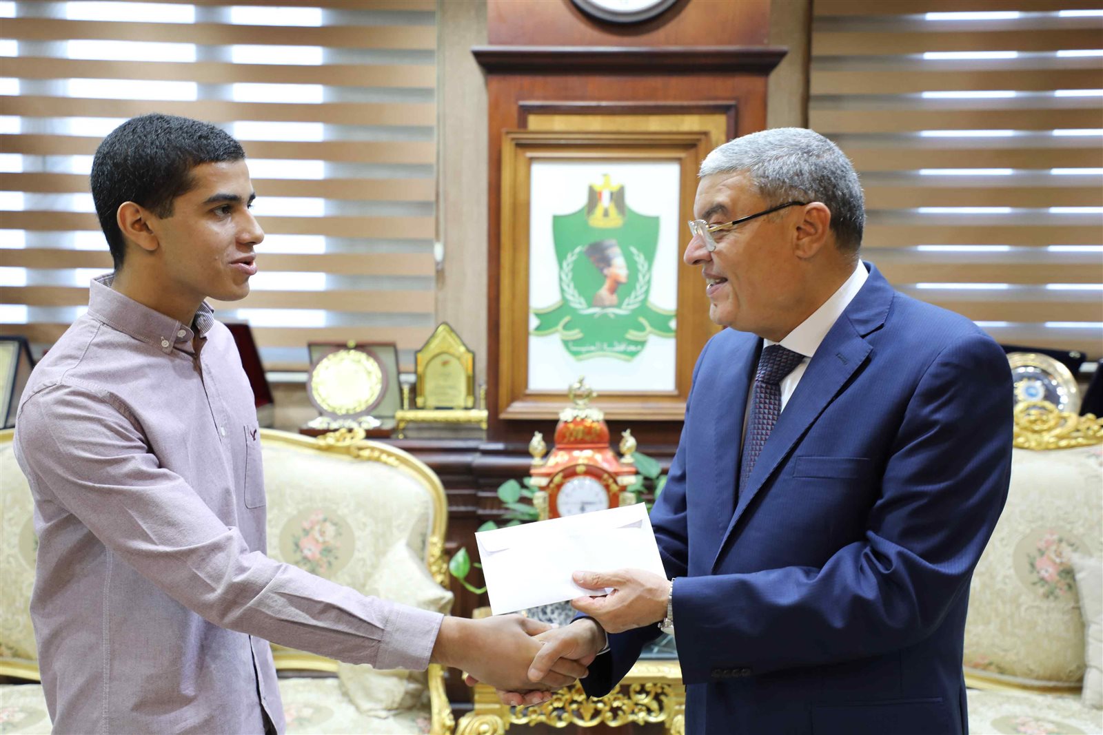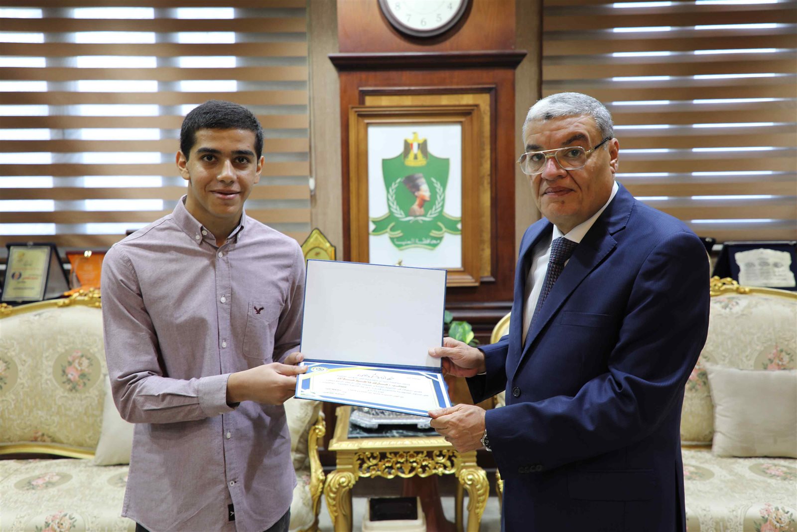محافظ المنيا يكرم الطالب مارك ناجح الحاصل على المركز الرابع بالثانوية العامة