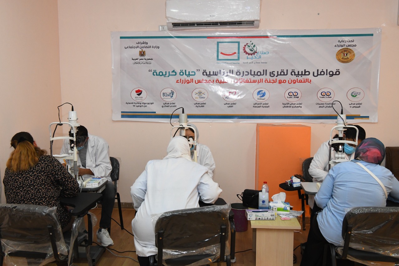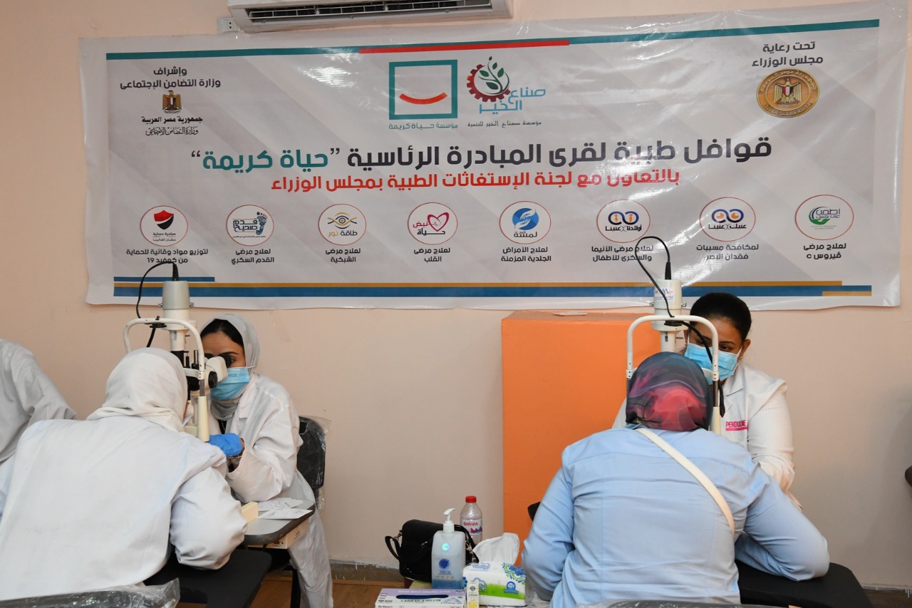 وقال الدكتور محمد شعبان أن مجلس الوزراء ممثلا فى لجنة الاستغاثات الطبية ، تنظم العديد من القوافل الطبية بقرى المبادرة الرئاسية حياة كريمة على مستوى الجمهورية ، وذلك بالتعاون مع وزارة التضامن الاجتماعى ، الجامعات المصرية ، ومؤسسة حياة كريمة ، ومؤسسة صناع الخير ، بهدف تقديم افضل الخدمات الطبية للفئات الأولى بالرعاية ، مشيرا إلى أن القوافل الطبية تشمل ( اطمن على نفسك لعلاج مرضى فيروس C ، عنيك فى عنينا لمكافحة مسببات فقدان البصر ، اولادنا فى عنينا لعلاج مرضى الأنيميا والسكرى للأطفال ، لمسة خير لعلاج الأمراض الجلدية المزمنة ، نبض حياة لعلاج مرضى القلب ، طاقة نور لعلاج مرضى الشبكية ، قدم صحيح لعلاج مرضى القدم السكرى ، حماية عشان اهالينا لتوزيع مواد وقائية للحماية من فيروس كورونا .